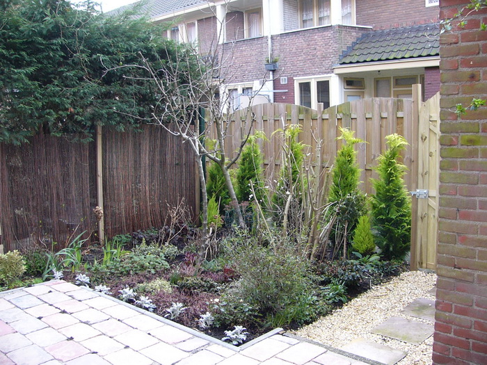 Вид от входа между (11) сараем и (12) клумбой. |