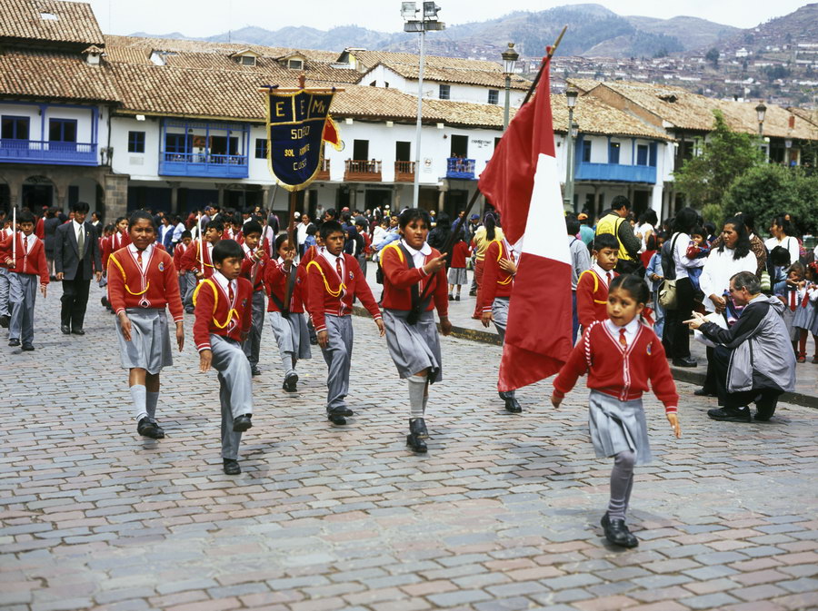 Начало нашего путешествия было в в столице Перу городе Лима. Гоод несколько неприятный особенность местного ландшафта такова, что над городом всё время стоят облака, и-за чего солнца не видно никогда, а сам город выглядит серым и сирым. Собственно там мы провели пол ночи и сразу вылетели в город Cuzco культурную столицу. В этом гоорде в первый же день мы попали на какой-то местный парад. Выглядело это так: