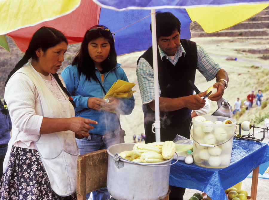 Ещё Перу это связь с испанской католической церковью (вообще говоря, испанцы там постарались). Казалось бы, пол Европы это католики, но в Перу это сильнейшим образом переплелось с местными, дохристианскими, доколомбовыми и даже доинкскими верованиями. Можно, например, на иконе «Тайная вечерия» в качестве угощений на столе увидеть того самого куя (гусары опять помалкивают),и сам иконостас может быть обильно украшен кукурузой, помидорами, ... всем тем, что подарила местная земля всему остальному миру.