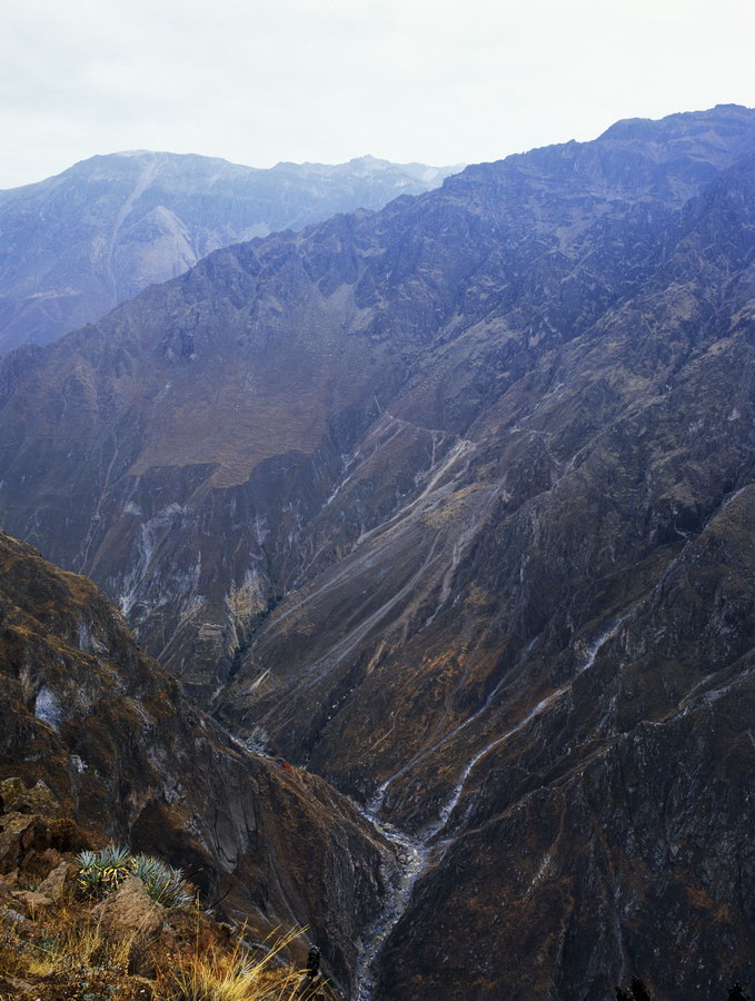 Вид на Colca Canyon. Туда люди ездят, чтобы посмотреть на андских кондоров, но нам не повезло из-за холодной погоды они летали на маленькой высоте (если присмотреться, в нижней части видно красно-кориченевое пятно на склоне горы в левой части кадра вот где-то там есть чёрная точка, обозначающая кондора. Очень жаль, что не удалось заснять их также близко, как это удалось Сергею Данюшевскому.