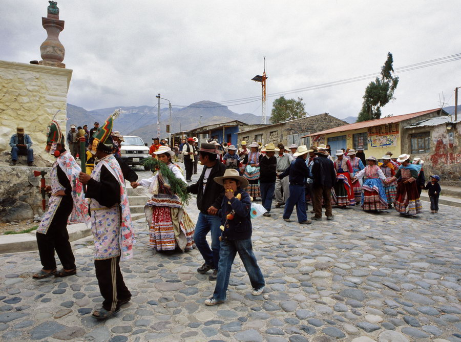 тот самый кадр, о котором я говорил под панорамой выше фестиваль в Ойантотамбо. Организуется так: члены местной общины сбрасываются небольшими деньгами, организуют музыкантов, еду, а потм со всех деревень съезжаются, пьют, едят, танцуют, гуляют. Кстати, у вскй тамошней музыки прослеживается один и тот же ритм. Не знаю, как его описать, но он слышен даже в песнопениях в главном католическом соборе Лимы