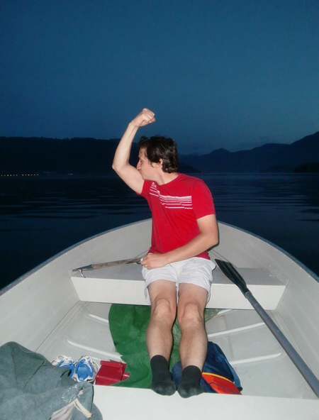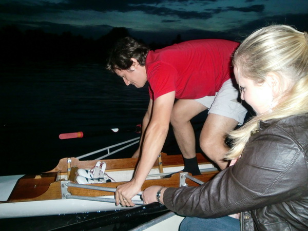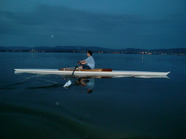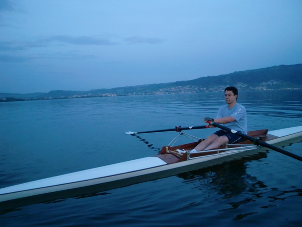 Timothy Man, colleague. By the way on this photos and later on video you can see that we're using a trick to keep the balance: while moving the oars back (preparing for the stroke) we were tuching water instead of keeping the oars in the air. Reduces speed, but greatly helps to keep balance. |