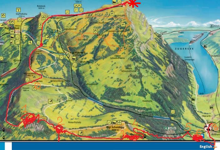 Для понимания масштаба. Дорога от точки 7 до 8 (от Lauerz до Arth-Goldau около четырёх километров)