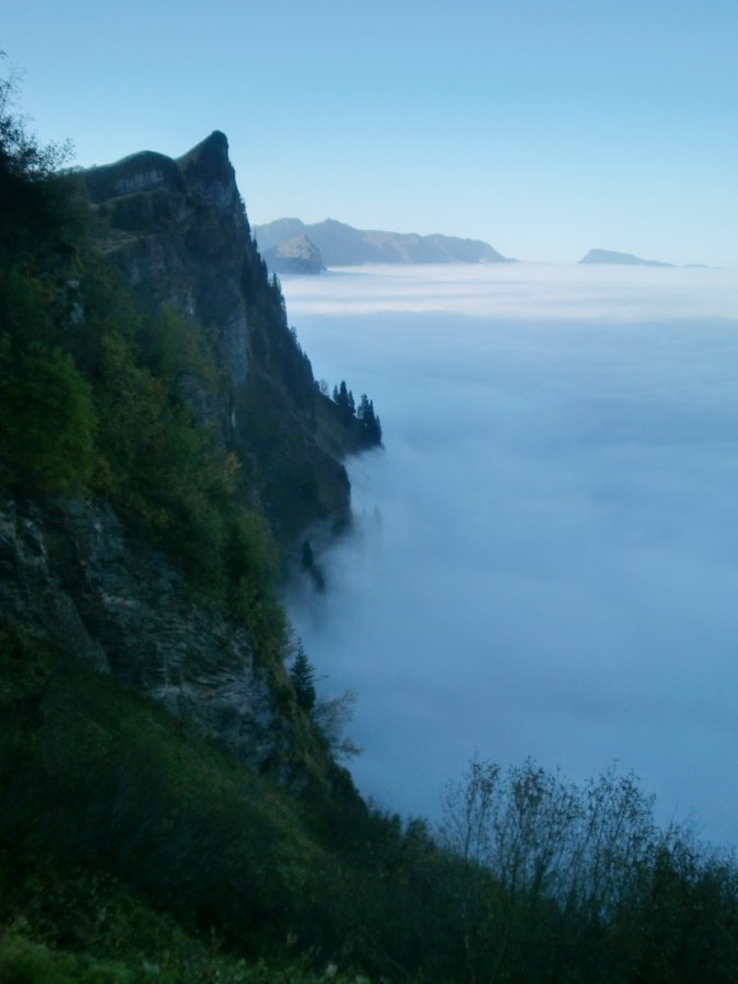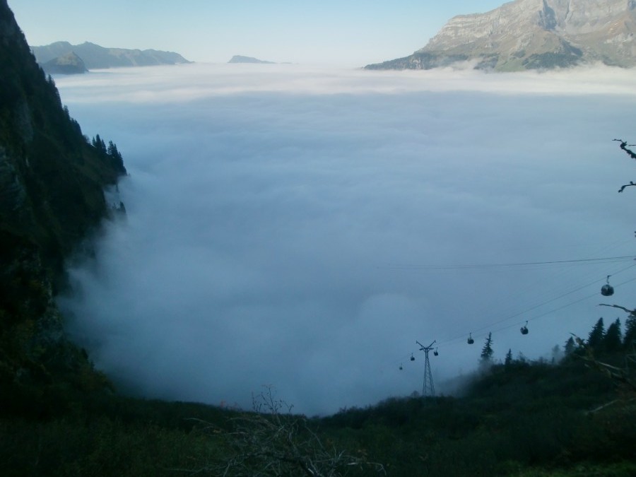 А тумана-то и не было, над облаками светило солнце и вообще было тепло.