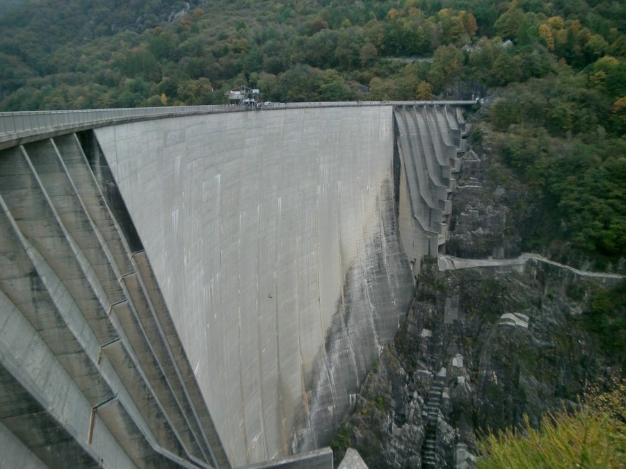 Вышли к Lago di Vagorno искусственный резервуар с дамбой Verzasca Dam.