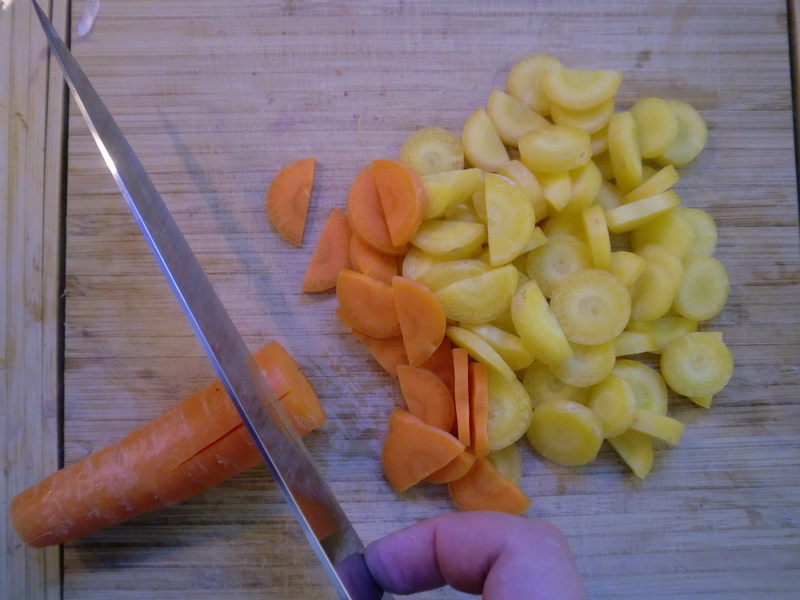 Нарезал морковку, крупно относително. Не на тёрке. В супе тёртая морковка не очень хороша, в дрищ превращается.