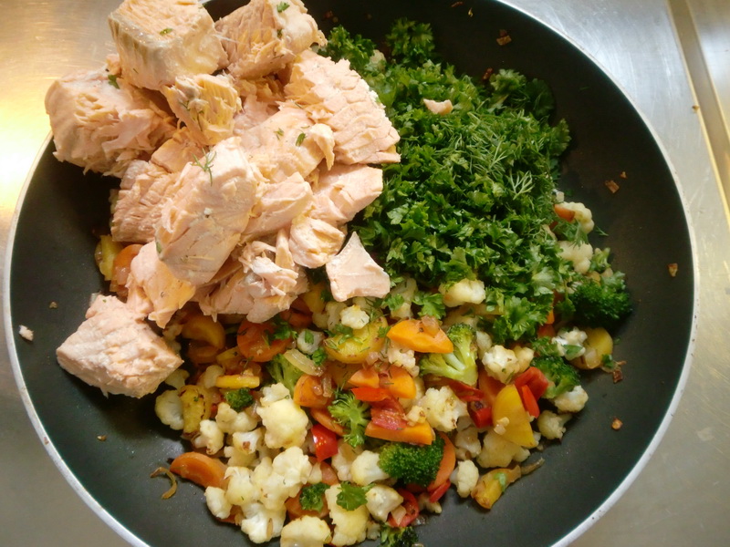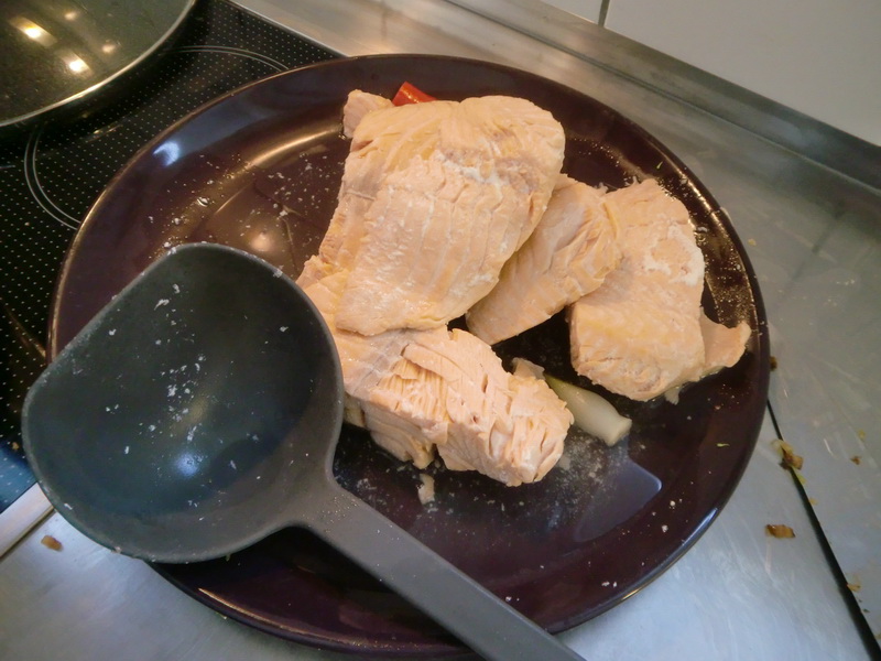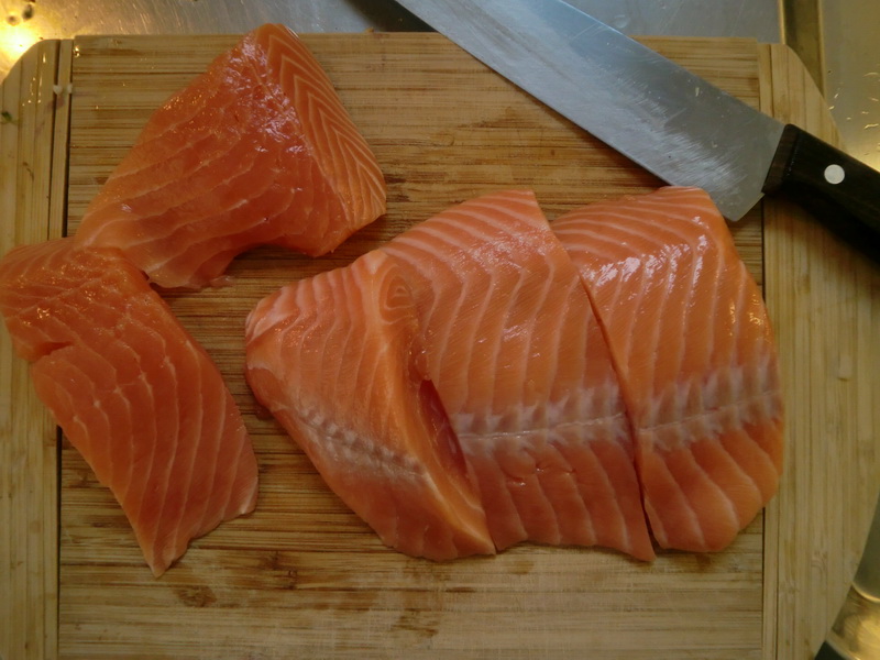 Пока овощи жаре-тушатся, порезал рыбу (в этот раз не самоловленную, а просто из сельпо).