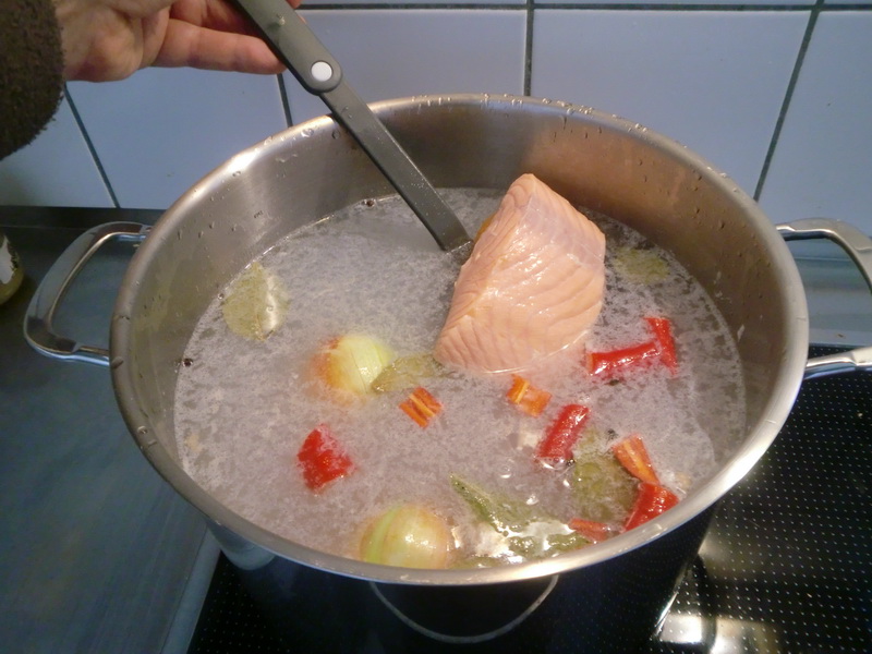 Пока картошка варилась, разобрал рыбу (так и хчется добавить: на порционные куски),