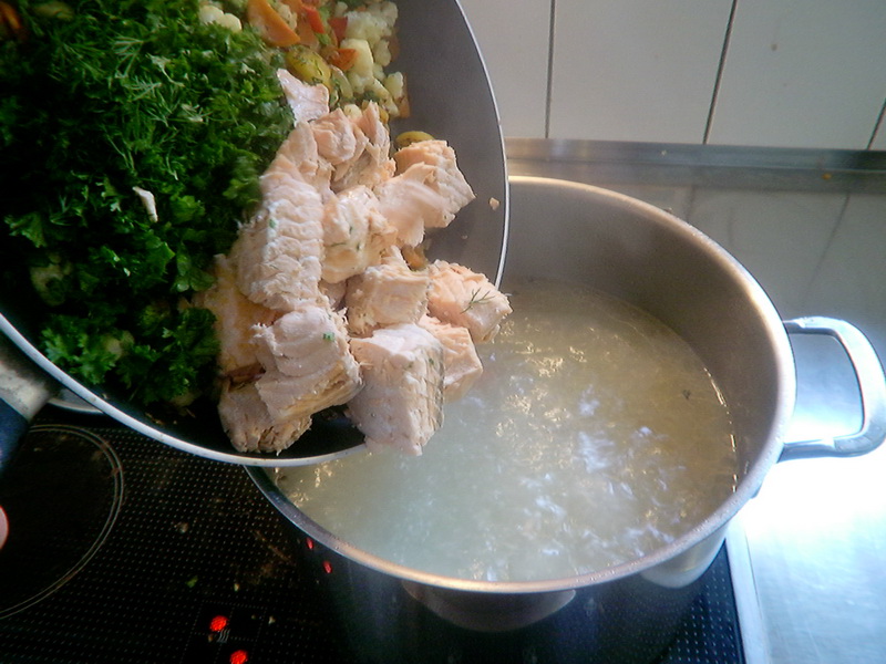 Картошка (или рис в следующий раз) в бульон.