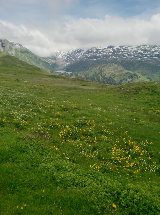 То самое озеро, что и выше, но с другой стороны. Самое начало пути на Johpass.