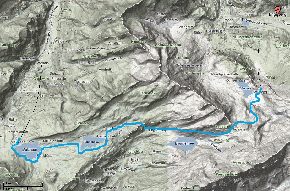 От него можно уехать на автобусе, а можно через перевал Johpass в Engelberg.