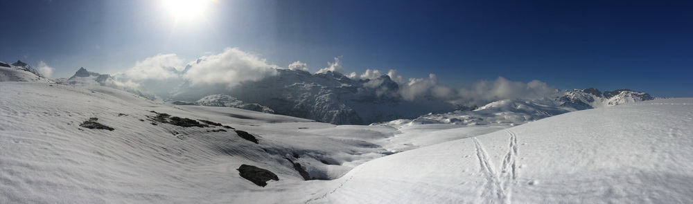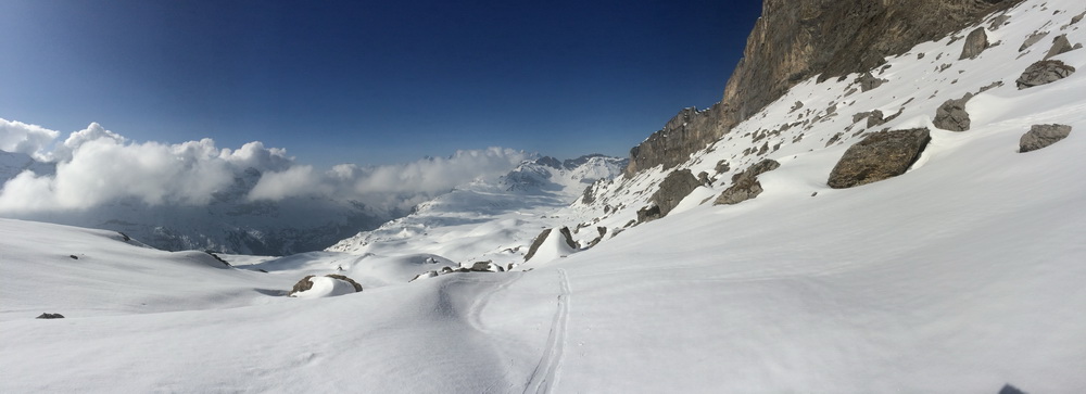 Эти перцы дальше решили спуститься и потом ещё подняться. Судя по тому, куда они пошли неясно, там вроде вообще снега не было