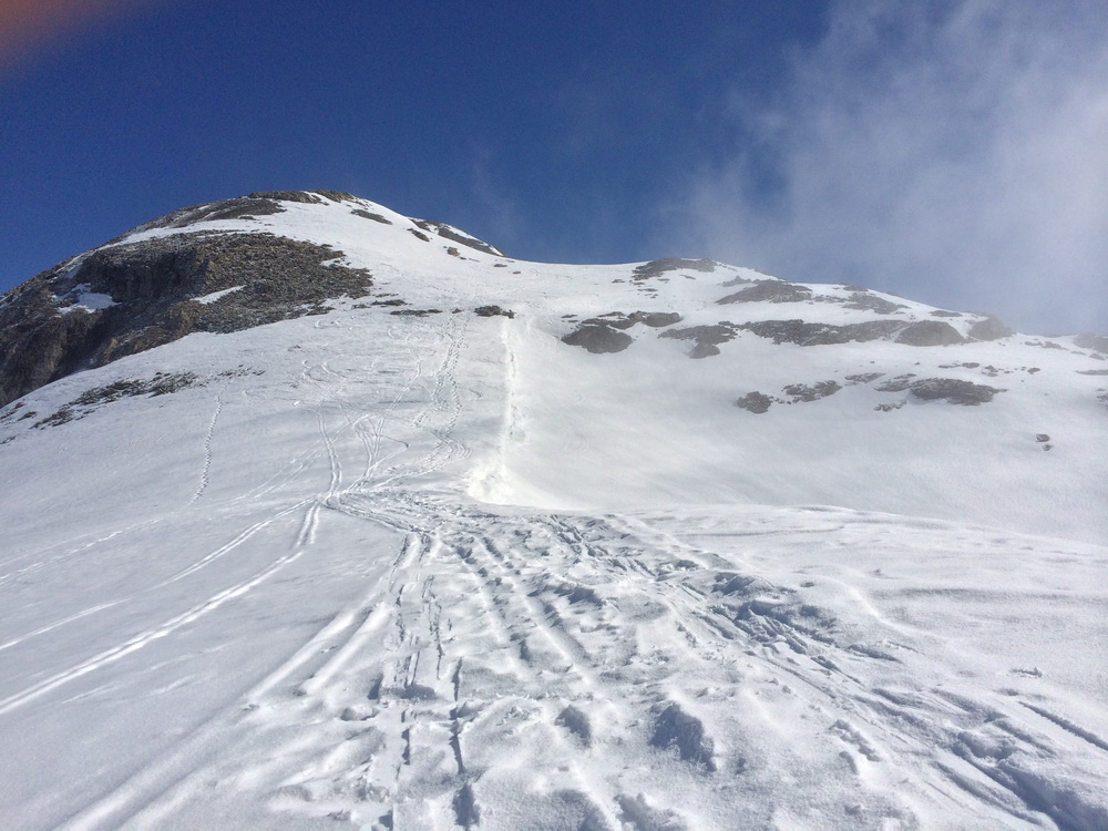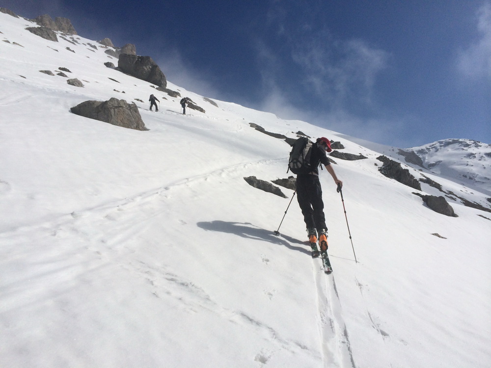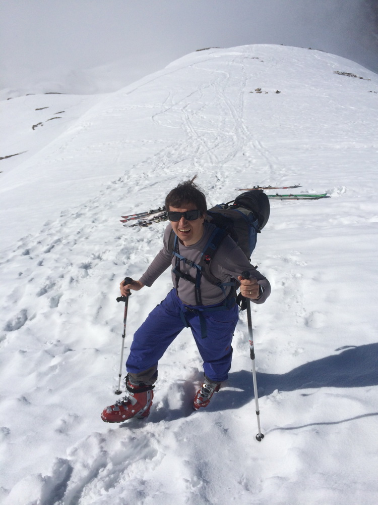 Но уже без лыж, ногами, ибо слишком круто, и снега мало