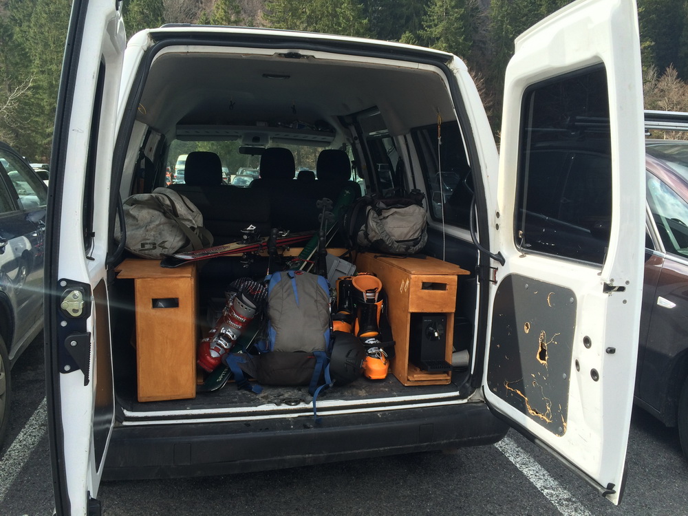 А сейчас вот такой минивен. Есть всё, включая кофе-машину.
