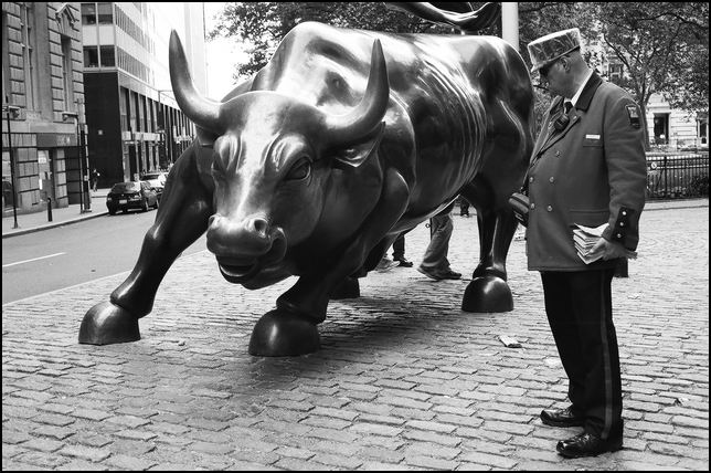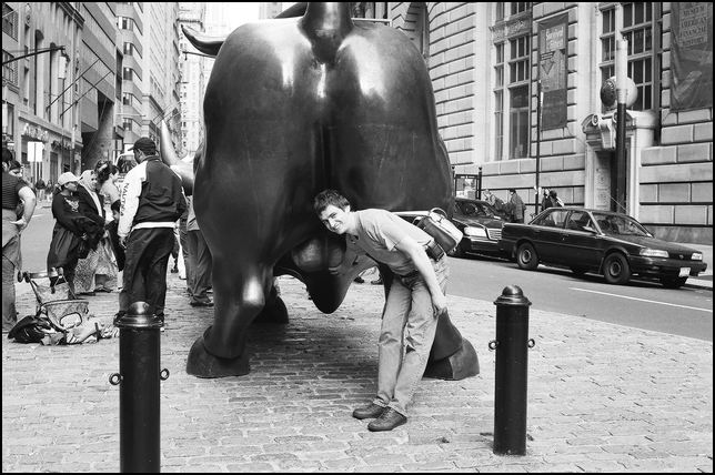 Самое начало Бродвея -- помацать быка за тысызыть орган -- на счастье