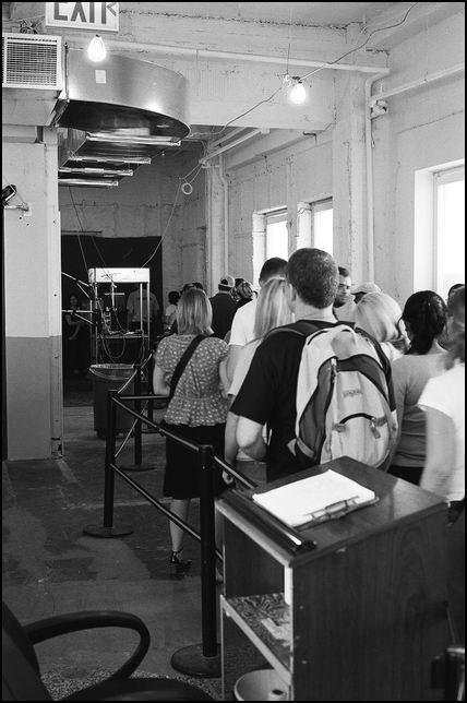 На ЗП -- каждый в очереди проходит через место, где его фотографируют.