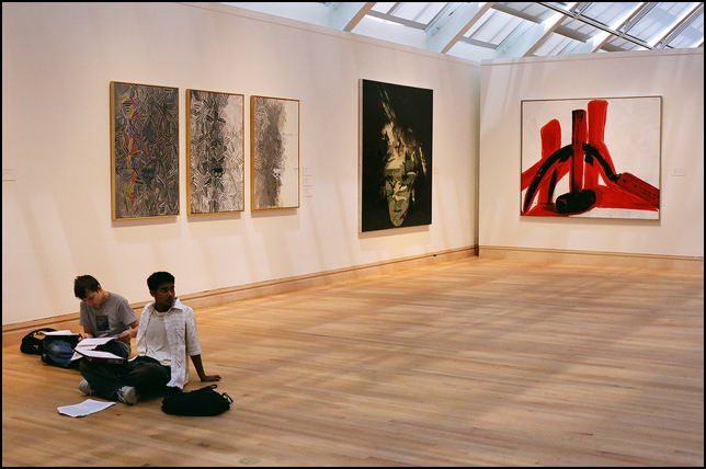 В самом музее -- куча детей, делающих домашние задания