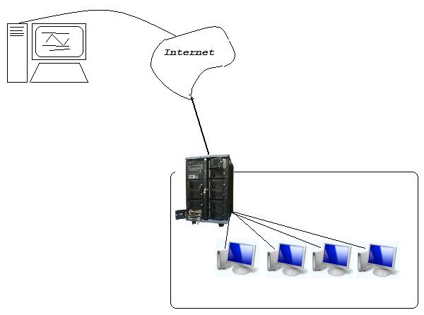 Expected scheme of connections. Lower right corner client boxes(1), in the middle office proxy (2), left upper corner additional pc (3) that will be used to jailbreak your office connection. (3) should have access to these restriced resources Setup on (3) is running sshd at any ip-port, opened for http requests at (2). Well-known are 80 (http), 443 (https), 8080, etc. If (3) Unix/Linux, just sshd -p <порт>, if Windows, I'd recomment installing Cygwin My recomendation: use port 443, as this will make your connections inoffensive. (3) can be your home pc, just make sure you allways now it's address (try using dyndns service). |
