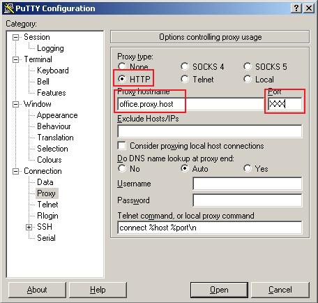 В результате Вы должны увидеть командную строку хоста (3). Собственно Вам надо этого добиться. Без этого никуда дальше. Пробуйте, смотрите, пробуйте включить логи у putty, ... Безусловно, может не получиться. Ограничения офисной прокси, закрытые порты, прочая, прочая... Тут целое поле для деятельности. |
