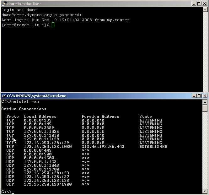 Попробуйте зайти на прежде запретную страницу. Де-факто теперь у Вас есть свой собственный прокси сервер, и Вы можете сконфигурировать его для любой проограммы, которая умеет пользоваться SOCKS5. ICQ, Jabber, MSN, броузеры (Для Firefox настойчиво рекомендую поставть Foxy Proxy, настроить нужные фильтры один раз и вообще забыть о том, что админ чего-то там запретил) Все Ваши запросы через этот мини-прокси в результате в шифрованном виде пойдут с Вашей клиентской машины (1) до компьютера (3), а дальше уже в интернет. |