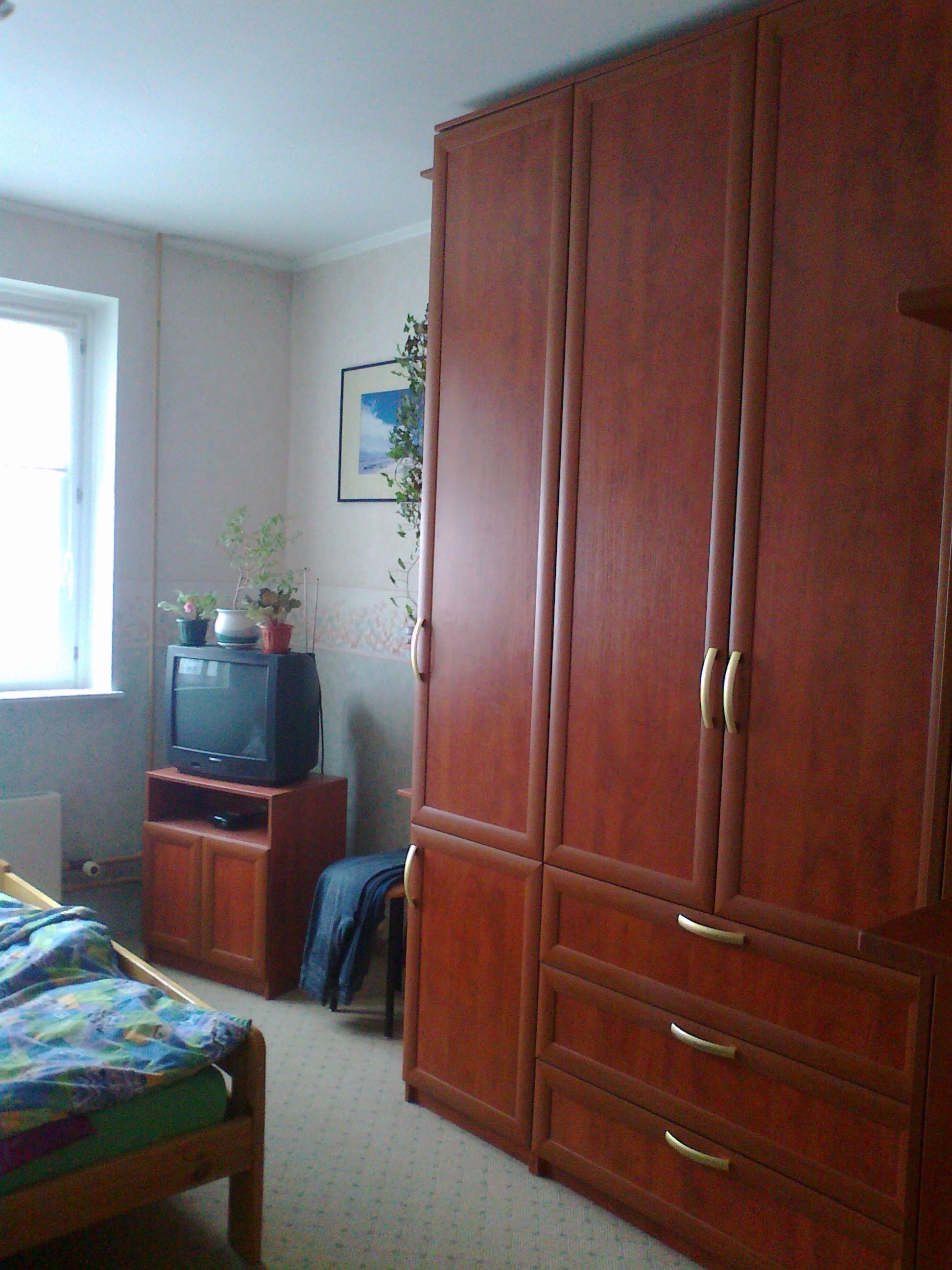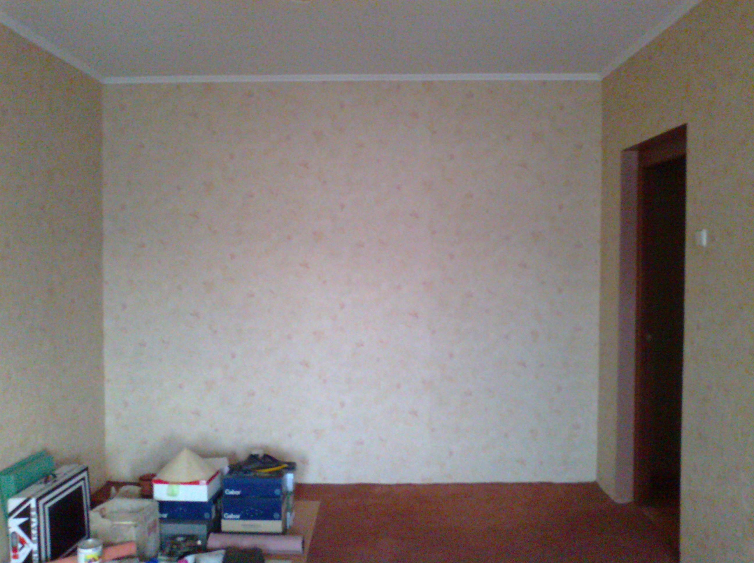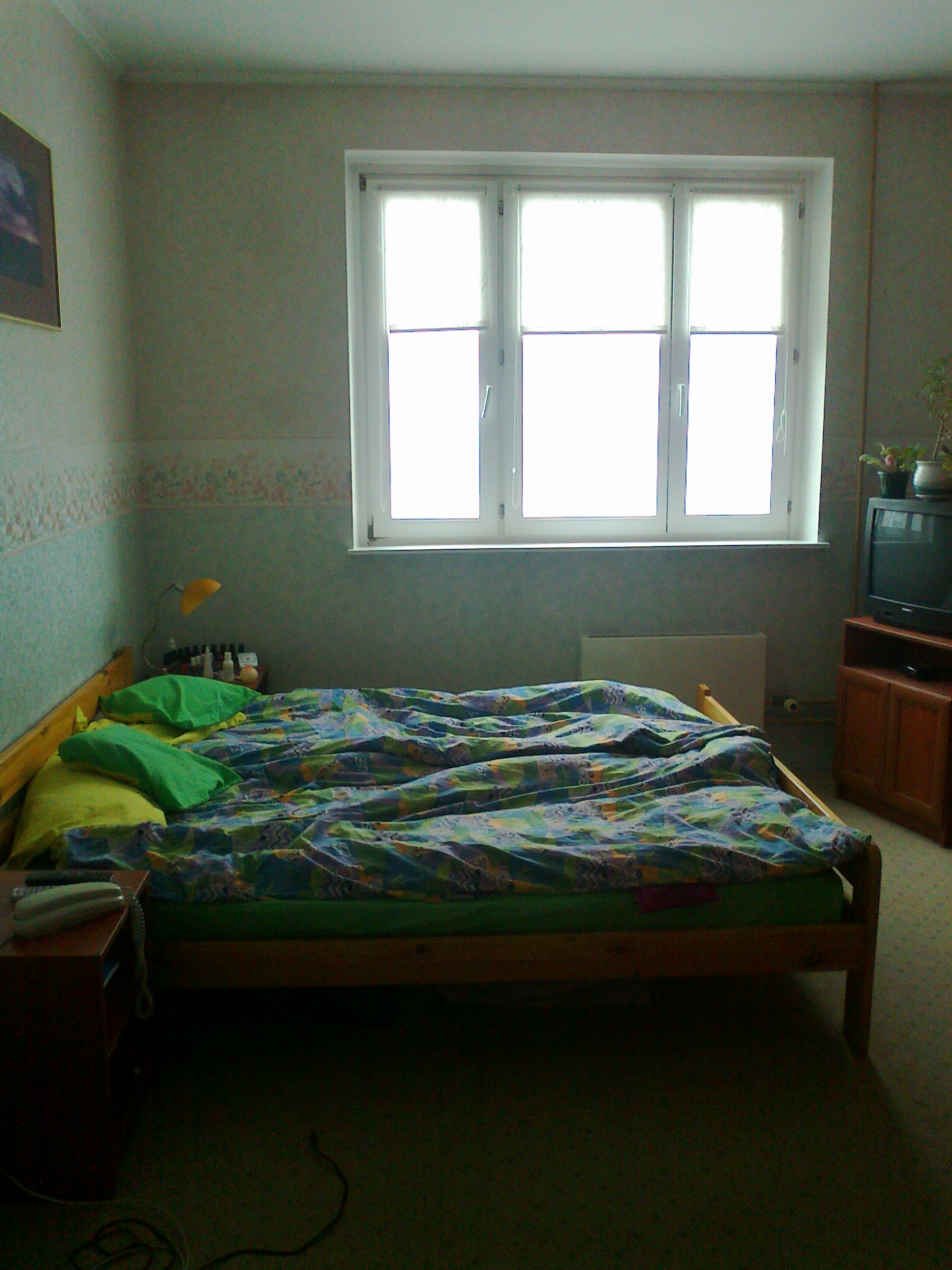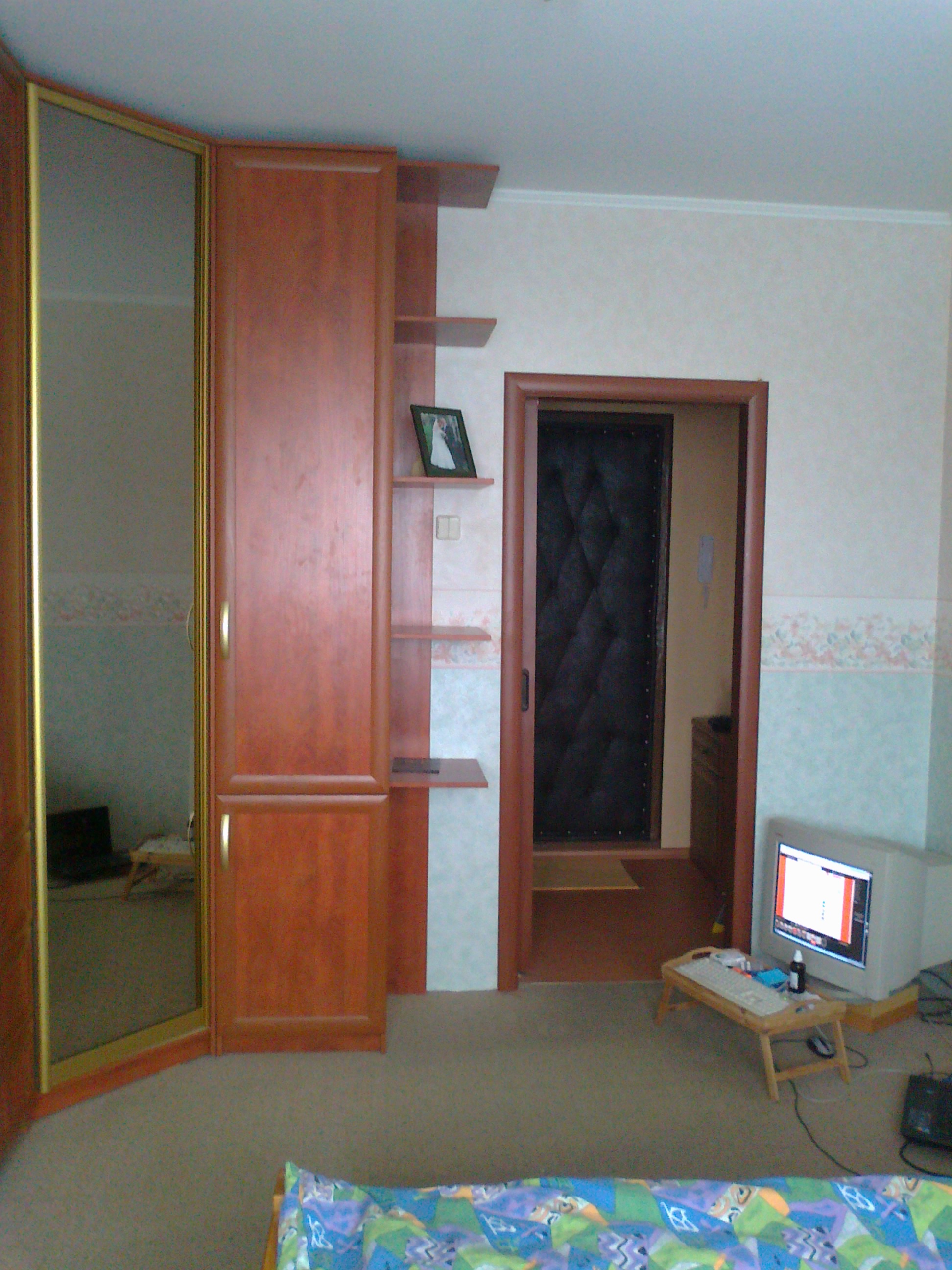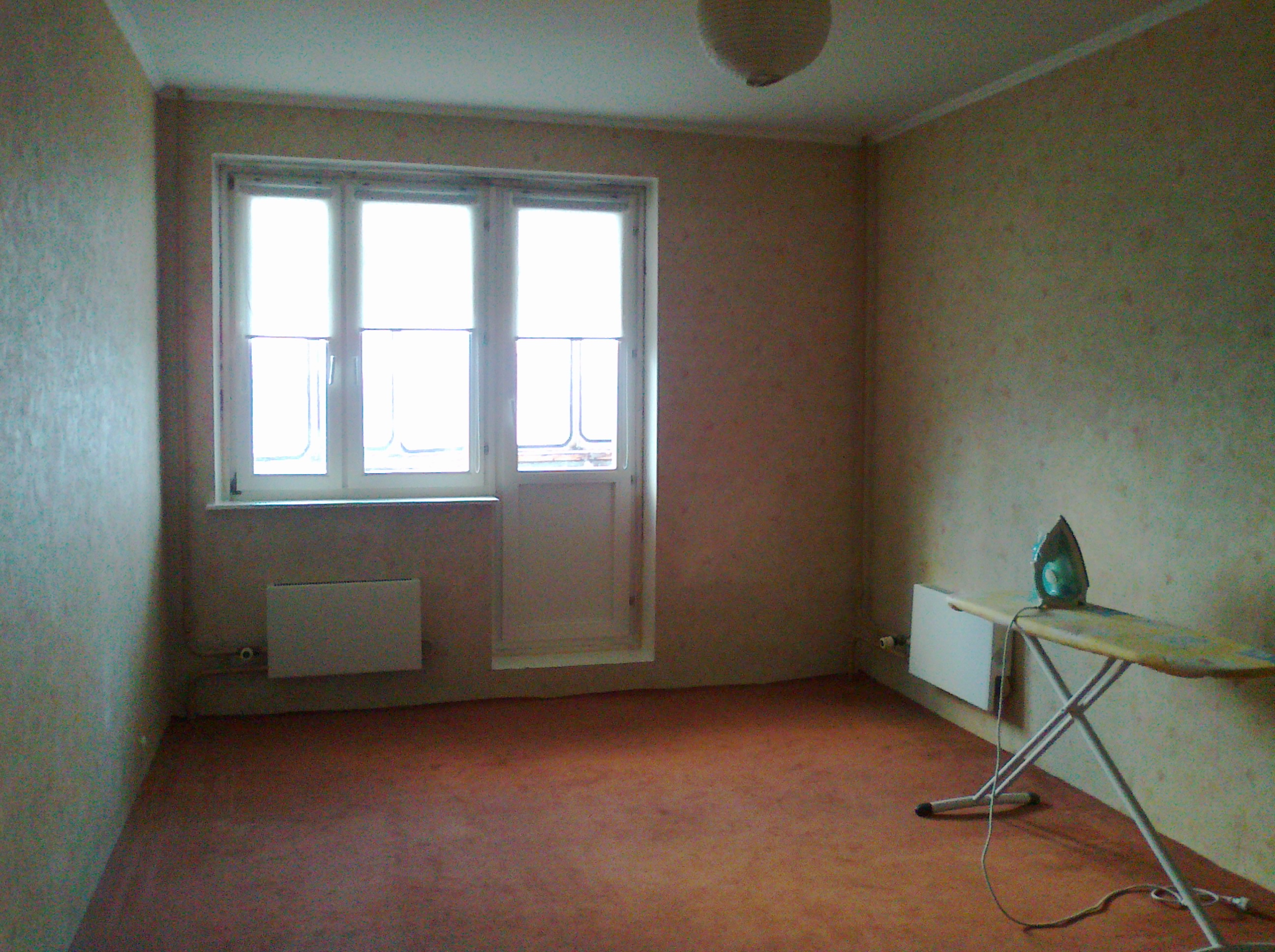 Маленьнкая комната, вид от окна. Дверь раздвижная, так что пространство коридора и комнаты не «съедаются»