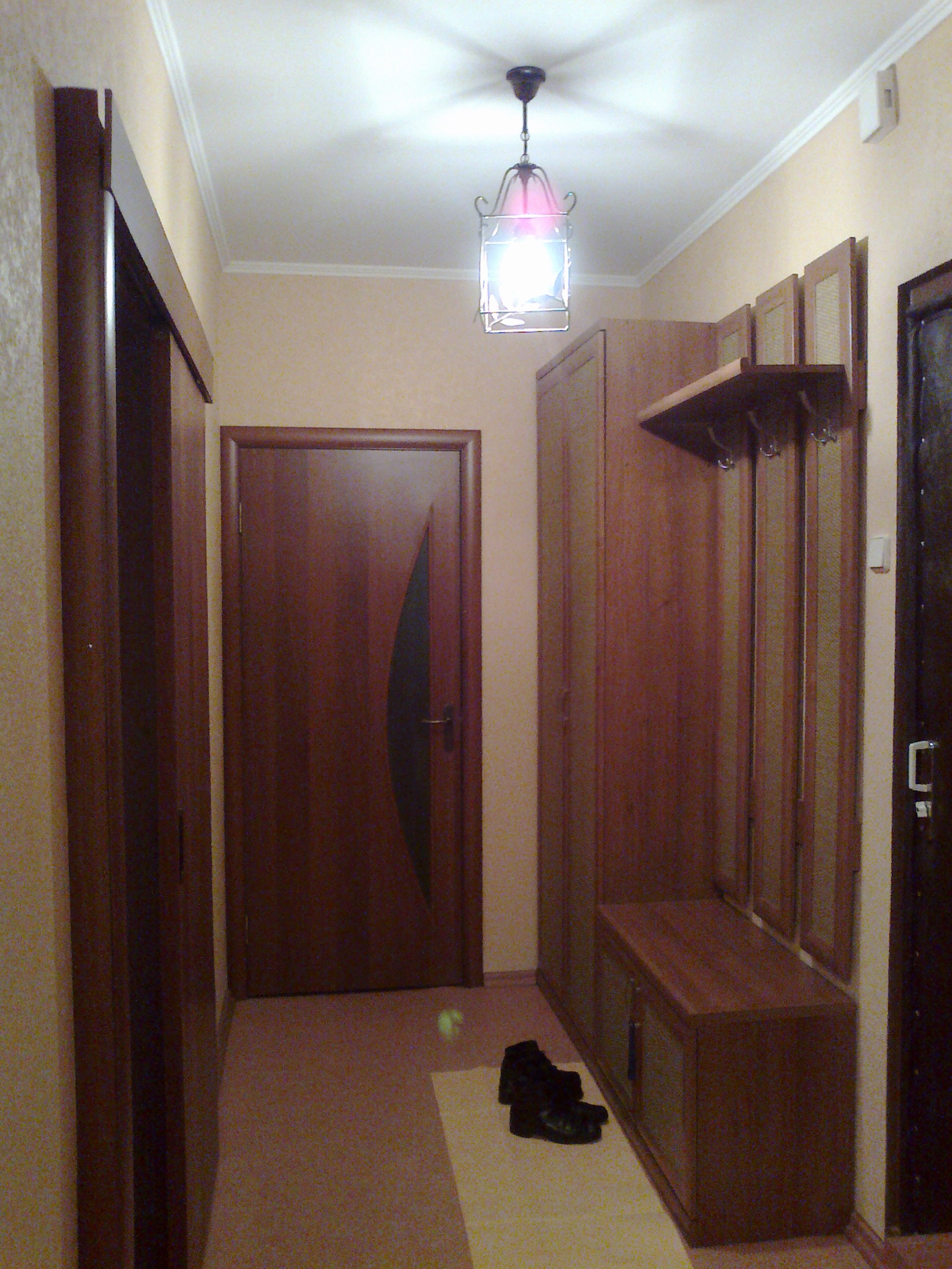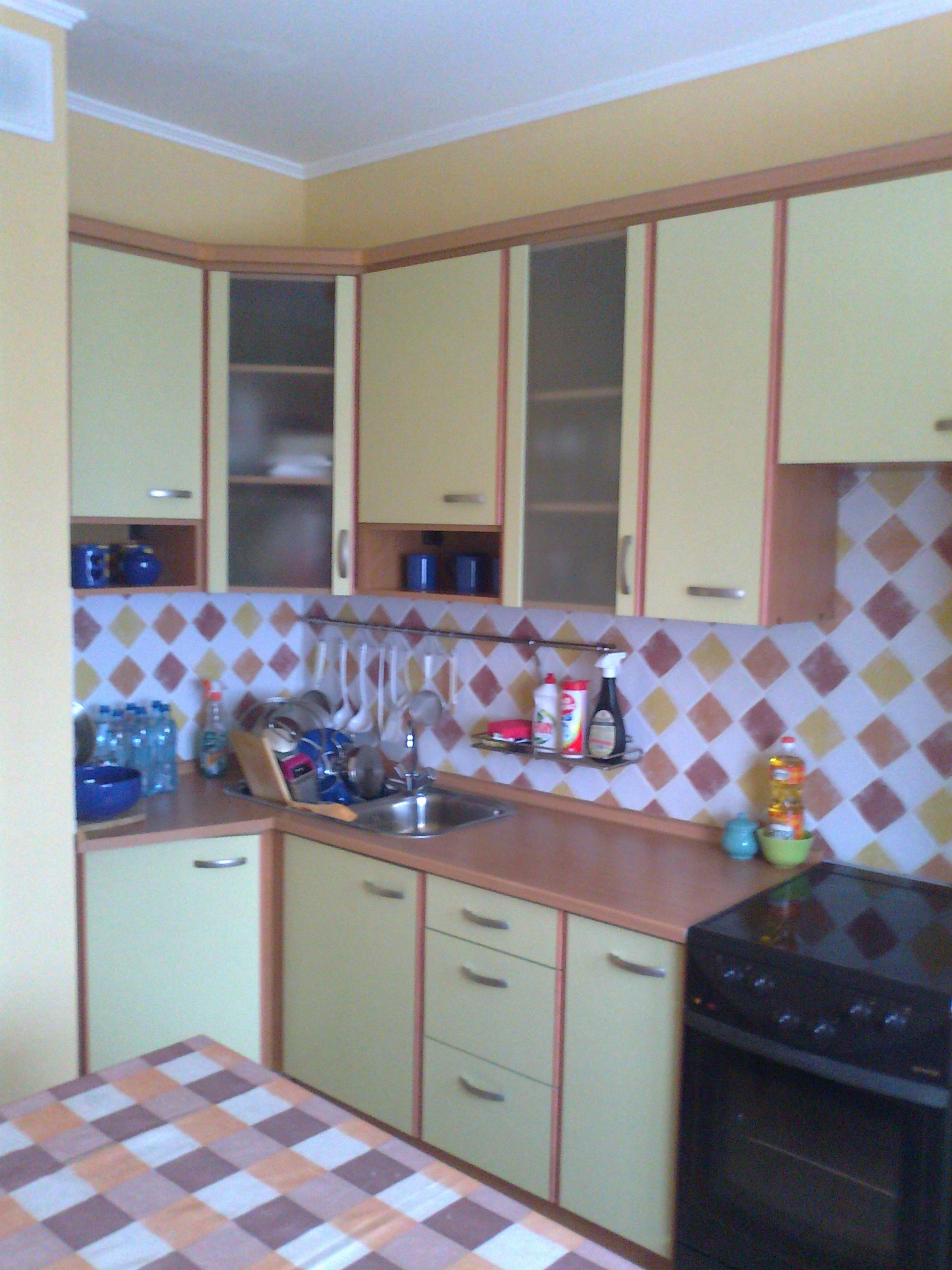 Стиральная машина, холодильник, кухня, телефон, один большой угловой шкаф (см. схему). Квартира свежая, животных и курящих раньше не было.