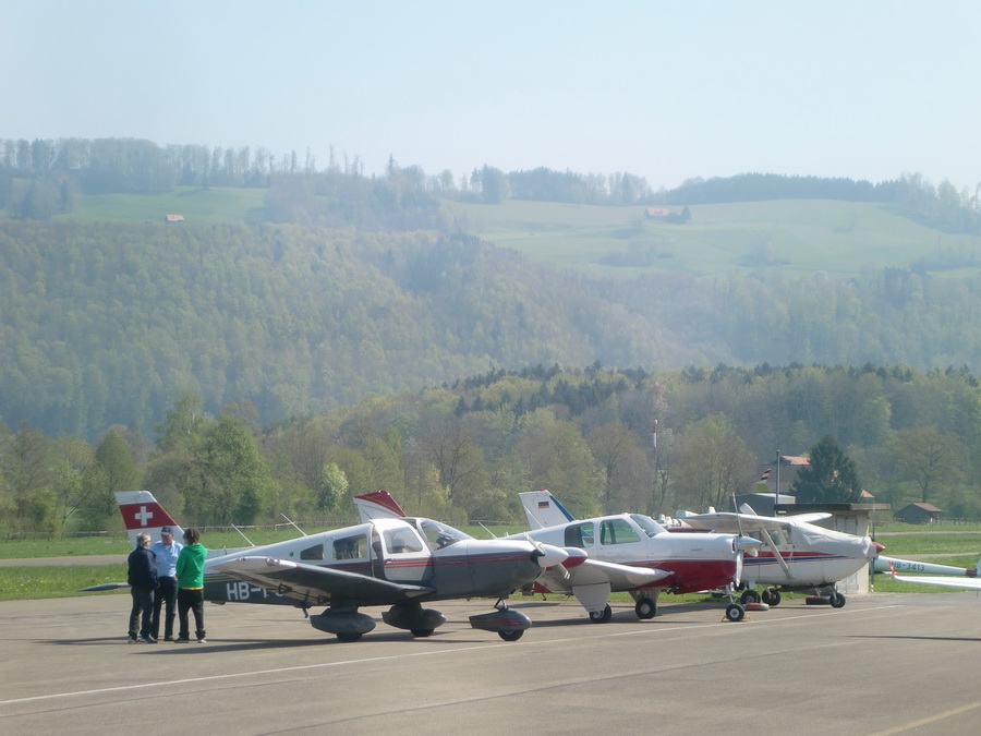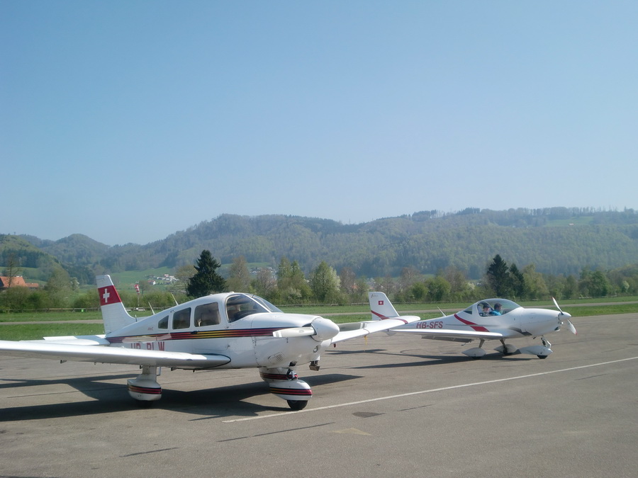 Пошуршав мозгами с коллегой, решили пойти на это дело. Я созвонился с главным в клубе и мы договорились о встерче прямо на лётном поле, а это недалеко от Цуга: http://goo.gl/maps/FEWW — аэродром рядом с городком Hausen am Albis. Как всегда, встретиться так, чтобы и я, и коллега и главный по клубу сразу вместе не получилось, поэтому туда я поехал один, на велике. Десять км, но по холмам... На месте меня встретил Ролан, приятный мужчина, где-то за 50 лет. Бывший пилот авиакомпании Swissair, позже — личный пилот одного российского алигарха, в настоящее время просто частный пилот и вот руководитель клуба http://www.sfswissair.ch/ (Chief Flight Instructor). За чашкой кофе Ролан рассказал мне вкратце о том, как выглядит процесс и предложил сразу полетать. Попёрло! На выбор — маленькие Aquilla, Cessna 172, т.п. Выбор — Piper Archer ( http://en.wikipedia.org/wiki/Piper_Cherokee )