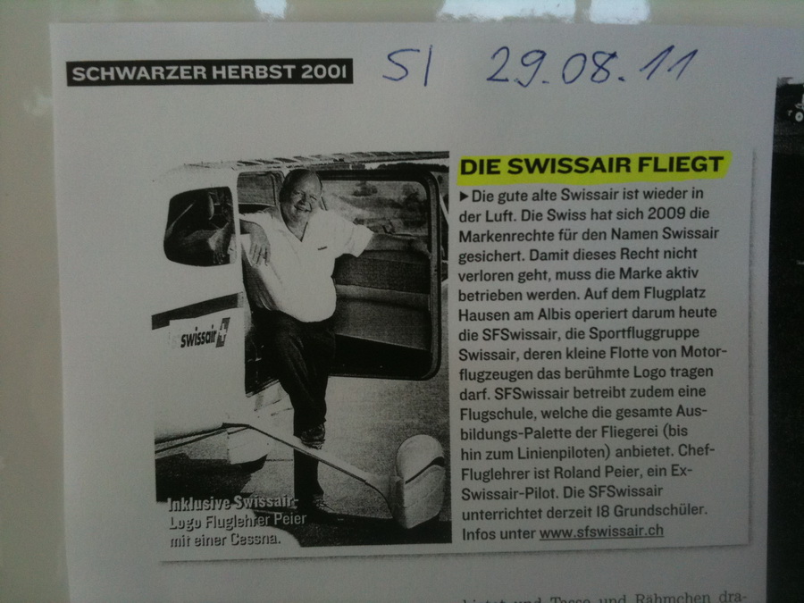 Пришёл пухлый конверт от Швейцарского Аэроклуба ( http://www.aeroclub.ch/ ). Я так понимаю (но ещё надо проверить), что это некий клуб федерального подчинения. Ну как РОСТО ДОСААФ и отдельно-взятая автошкола. Письмо по-немецки, наклейка (на горнолыжный шлем присандалю её позже), номер журнала AeroRevue ( http://www.aero-revue.ch/ ) и буклет от ассоциации аэро-чего-то там Швейцарии ( http://www.mfvs.ch/ ). Короче говоря, зазывают дойти до ATPL.