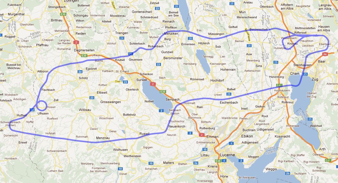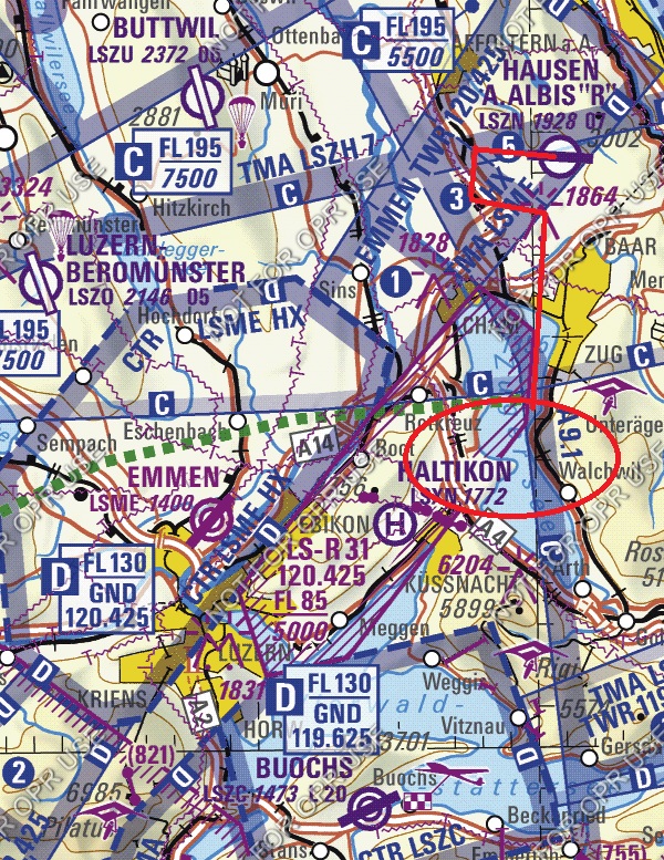 Я летал на высоте 4500ft +- лапоть. По карте видно, что я вне контролируемого пространства, но по правилам хорошего тона, объявил в Emmen, что я над Цугским озером кручусь-верчусь. Ну так, приятно отчего-то, от вежливости.