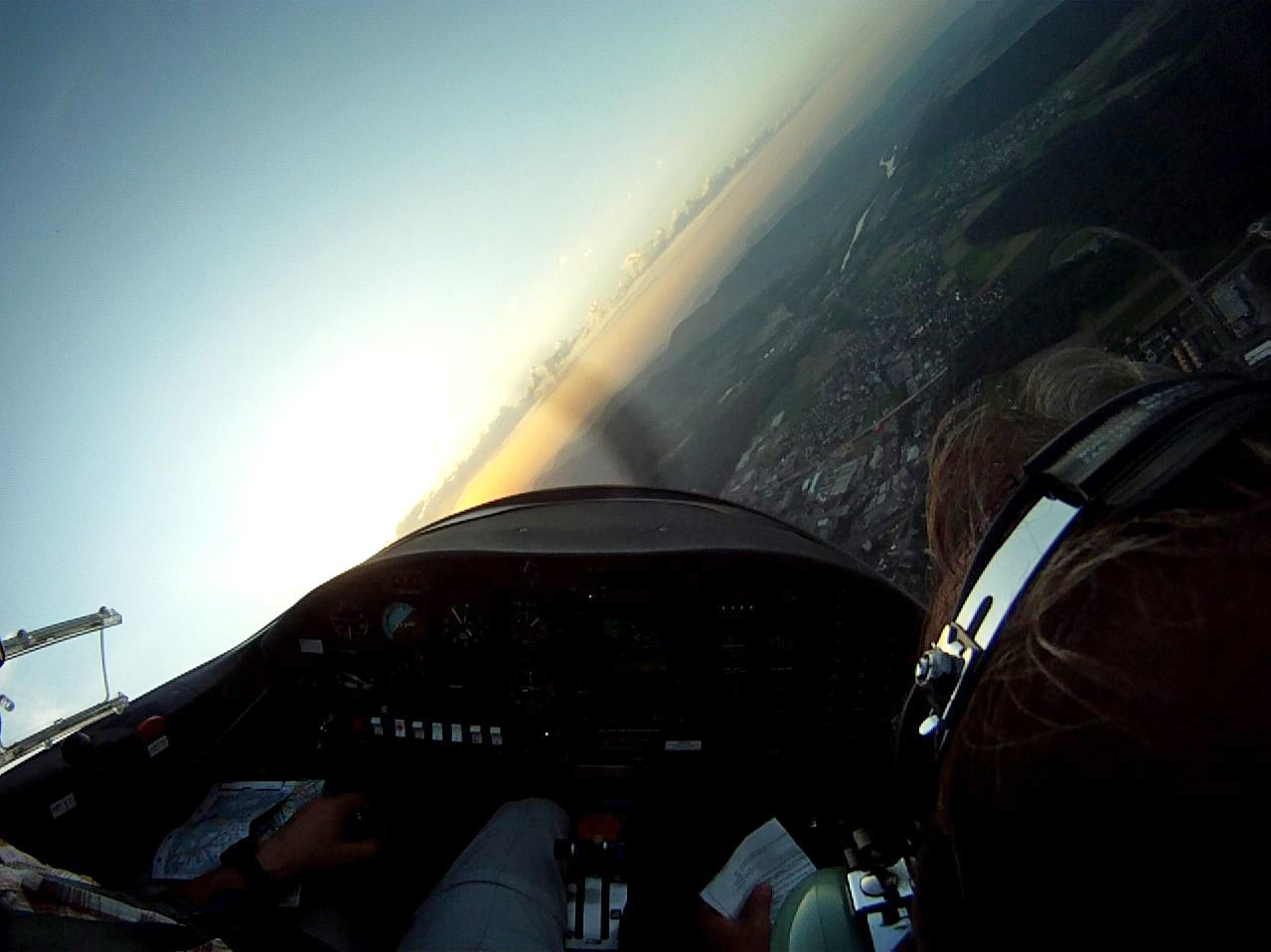 (Два бублика над озером — это я сплоховал: там надо пролететь через CTR LSME, а я то неправильно выставил частоту, то не переключил на неё радио, спешил и всё такое, ну и в результате решил, что лучше на месте покрутиться и всё разрешить, инструктор сказал, что так действительно и надо)