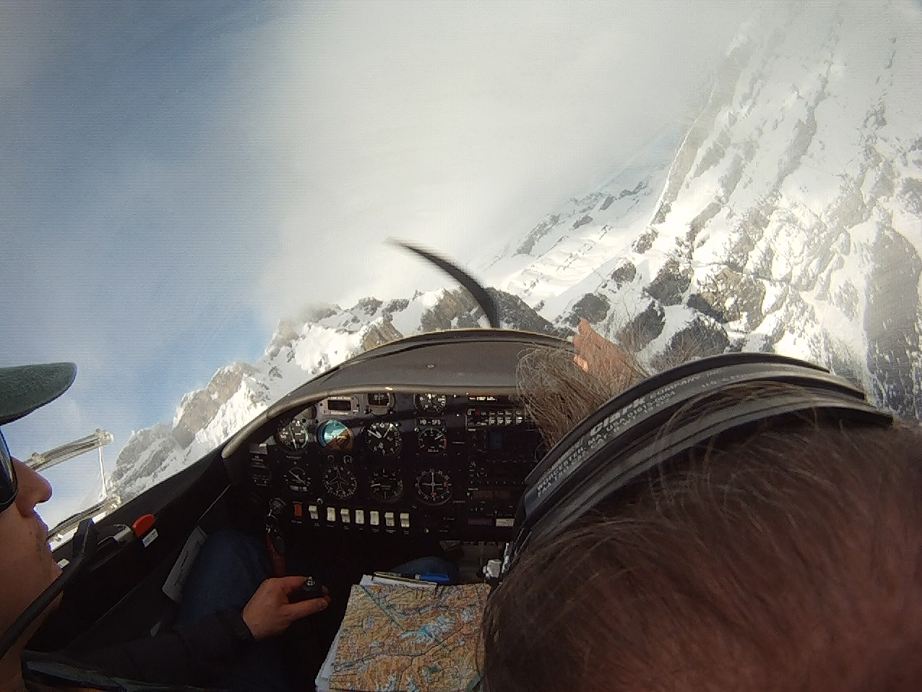 Предзакатное время.. Полетели? Полетели. Сначала предполётный чеклист вне самолёта, открываем двери, и Ролан говорит: садись в левое кресло. В левое? Я? Вот так сразу? (Примечание для тех, кто вне этого дела: левая “чашка” — командир воздушного судна, по крайней мере в коммерческой авиации). Главный говорит так, стало быть так. Внутресамолётный чеклист, дальше завёл и всё, говорит: рули до взлёта. Эх-ма, я ж и машину-то в жизни водил всего пару раз по пять минут. Схема управления (штурвал+педали) даже проще, чем в машине, так что довёз. Взлёт, естественно делал не я. вздёт, набор высоты, и опять — бери штурвал, лети. “Давай на ту точку”, “давай нос на ту вершину”, “знаешь, где твой дом, давай над ним”. В итоге мы пролетели приблизительно вот по такому маршруту: