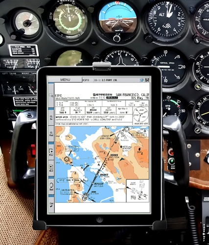 (картинка с https://www.friebe.aero/iPadiPhone_und_Android_TabletsSmartphones_Zubehoer/5,2,353,349,1139,6805,0,1.html ). Опять же, Skyguide (это швейцарская фирма, котороая отвечает за VFR manual, т.п.) стала выпускать VFR Manual в электронном виде. Проблема в том, что пока безбумажный кокпит официально не разрешён, то есть предполагается, что сам каждый раз распечатывать. Ну, это ладно — бумажный вариант пока распространяют, а вот чего хочется это электронныйе VACи, встроенные в AirNav Pro — пока вроде обещают. Вот это будет огроменная плюшка: искать точки в незнакомом месте, да близко к посадке в некотором роде “стрессово”, а так будет подмога.