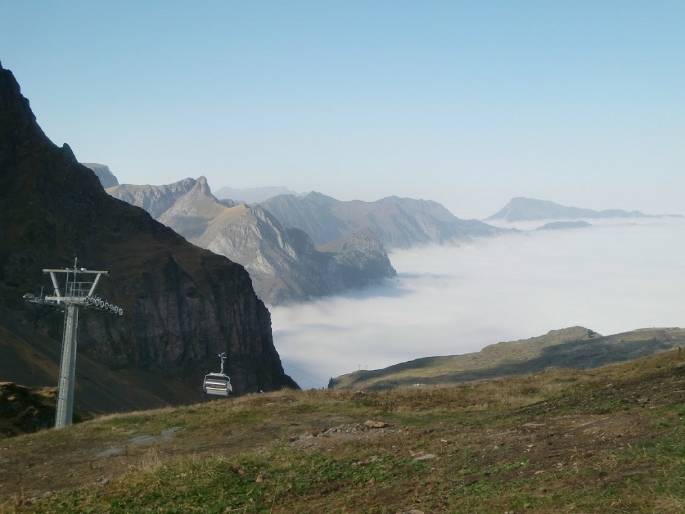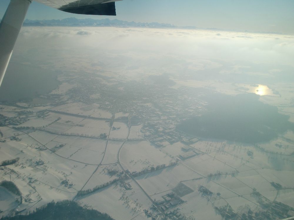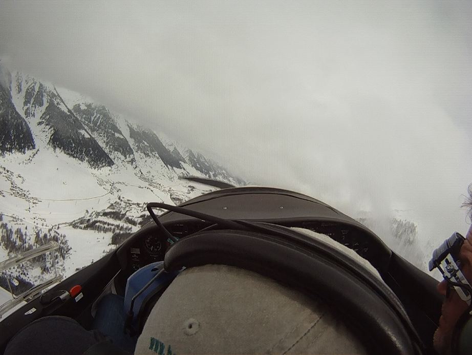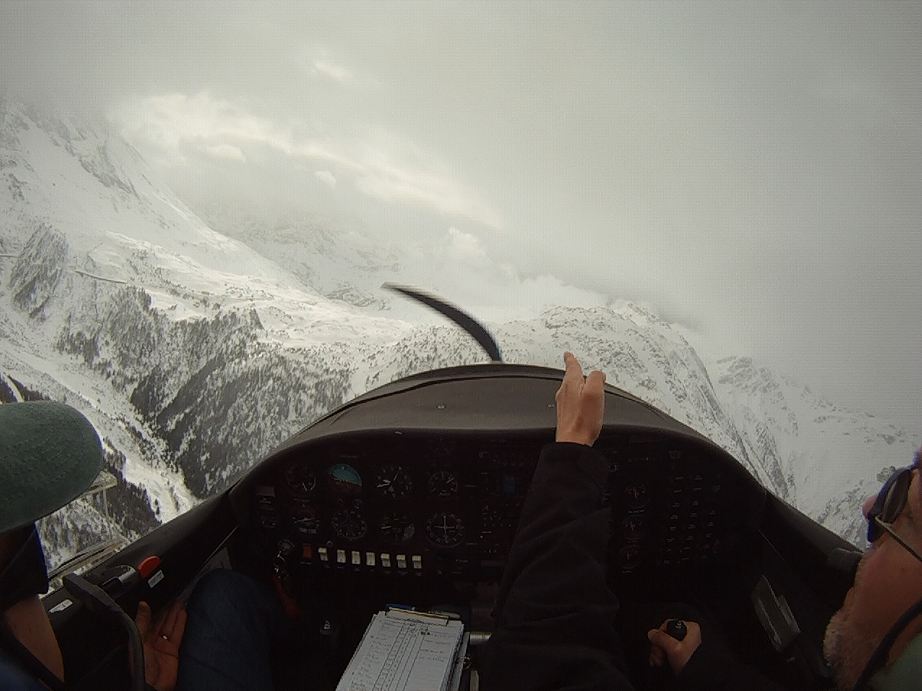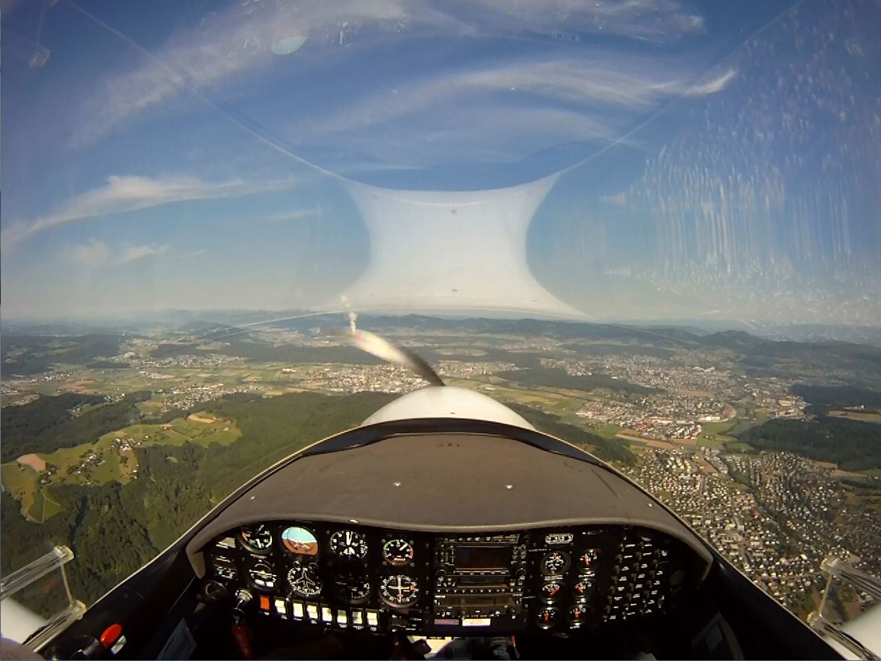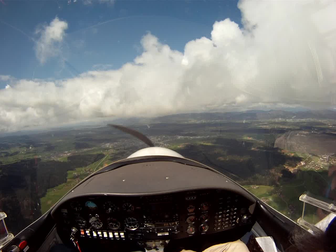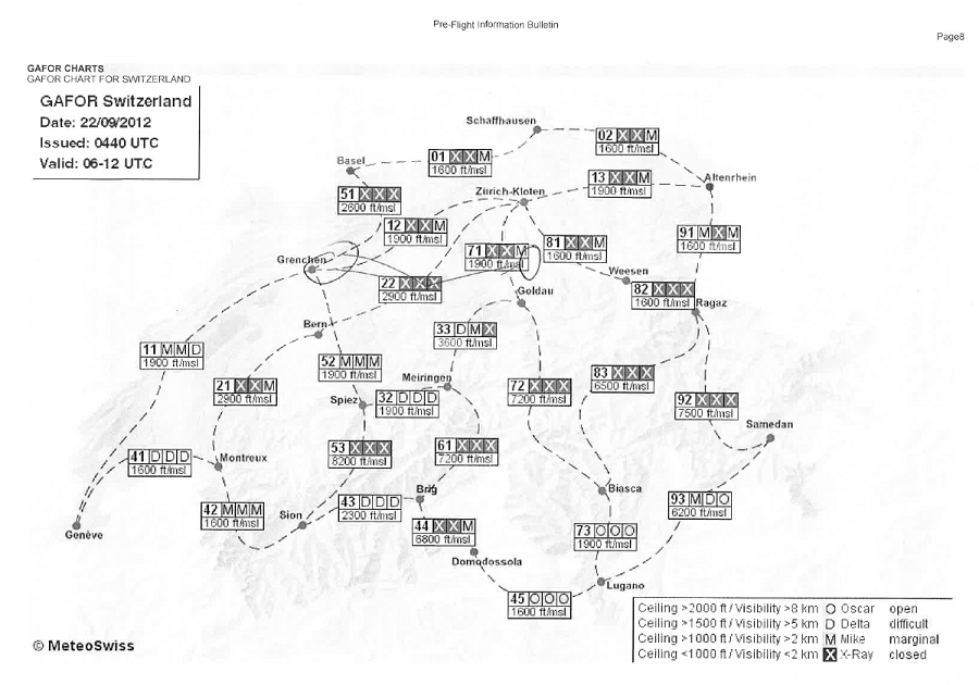 Занятие в субботу пропало. Беда прямо. Сейчас сезон погоды, которая называется Hochnebel ( http://de.wikipedia.org/wiki/Hochnebel_%28Schweiz%29 ) — Швейцария накрыта высоким давлением, каждый день стратус-облака с низкой базой, иногда так выглядит и вообще, как туман от земли и до куда-там. На самом деле в тот же полёт 22/09/2012 в Grenchen (LSGG) я уже запрашивал SVFR взлёт, ибо ceiling был 1100ft AGL. Выглядит это приблизительно так: