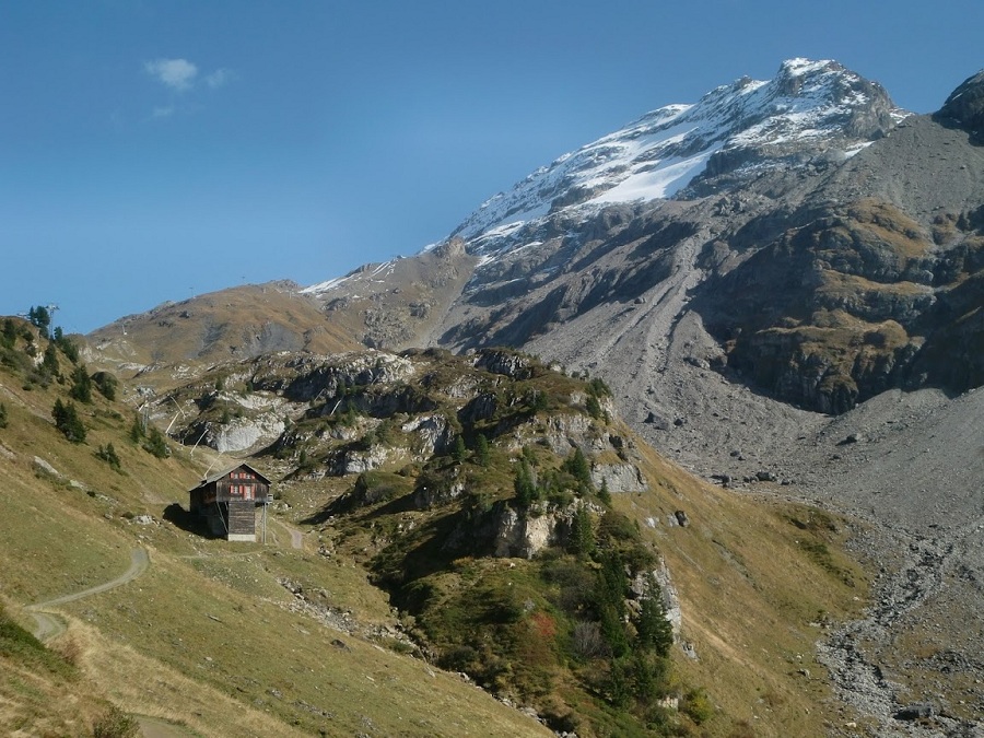 Наверху вот такая погода (в кадре дорога на Johpass, справа — вершина Jochstock)