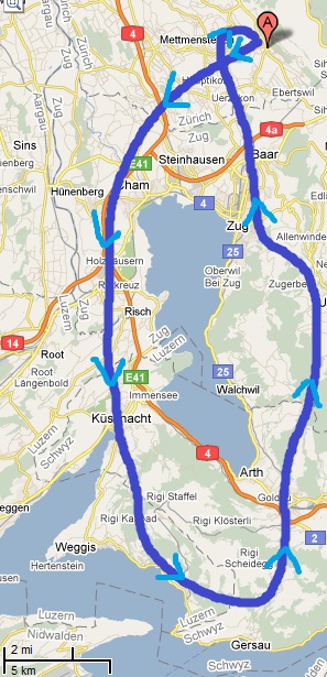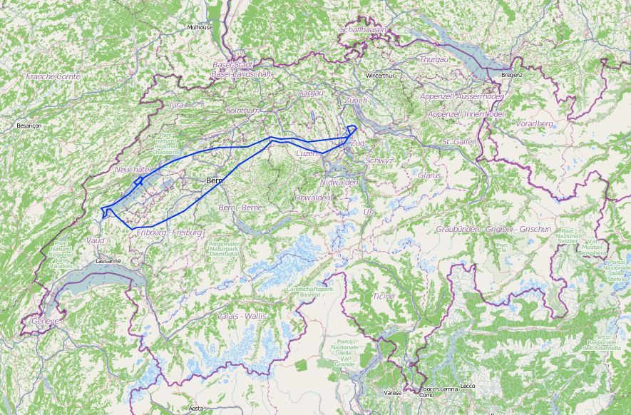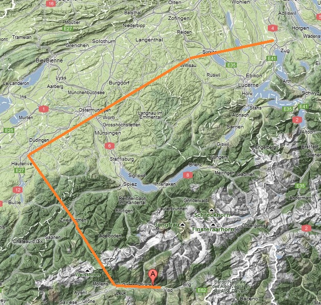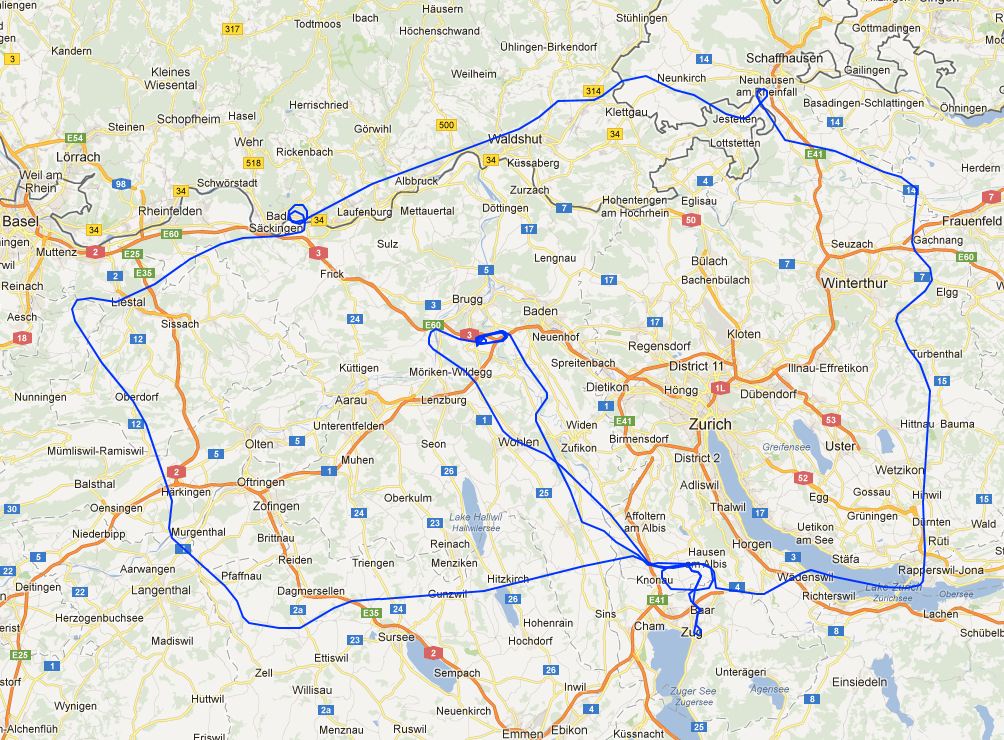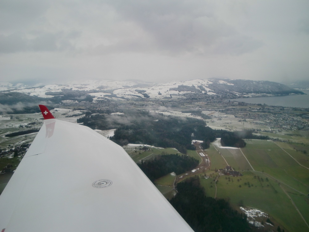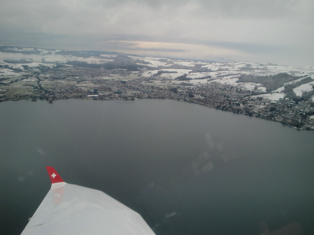 Я летал на высоте 4500ft +- лапоть. По карте видно, что я вне контролируемого пространства, но по правилам хорошего тона, объявил в Emmen, что я над Цугским озером кручусь-верчусь. Ну так, приятно отчего-то, от вежливости.