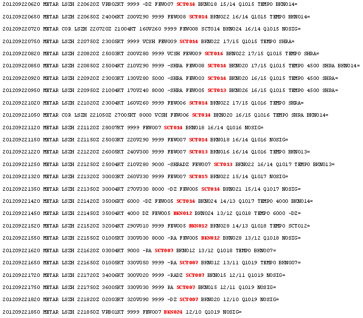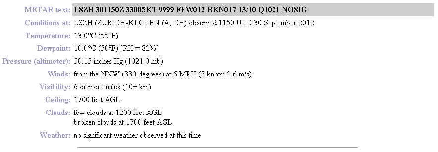 METAR’ы за весь день для Цюриха (LSZH, но вообще говоря, я обычно смотрю погоду вокруг по LSZH, LSZG, LSZB, LSME):