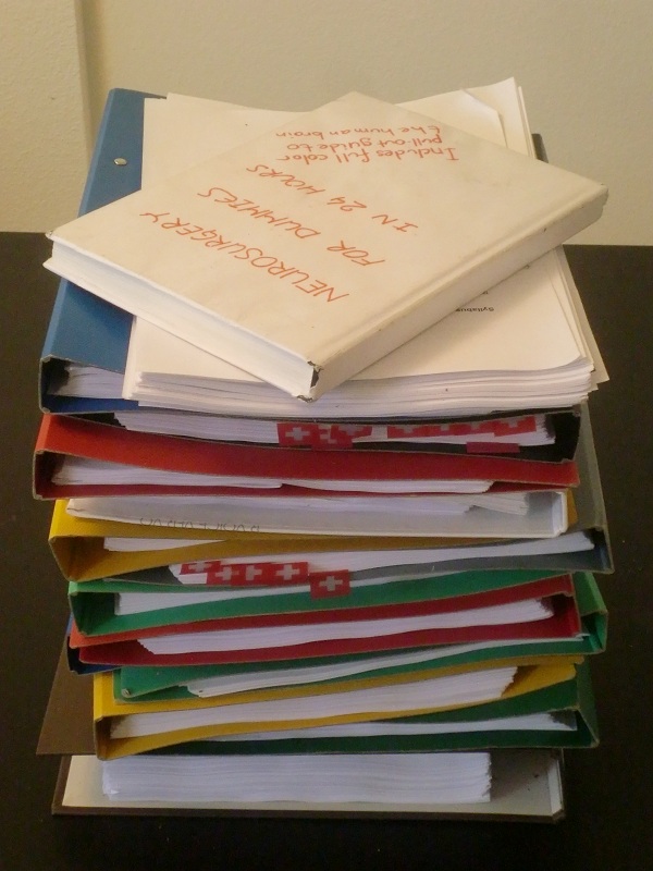 книжка сверху — по метеорологии, я её, в целях конспирации завернул в бумагу, а на получившейся суперобложке написал “нейрохирургия для идиотов за 24 часа”.