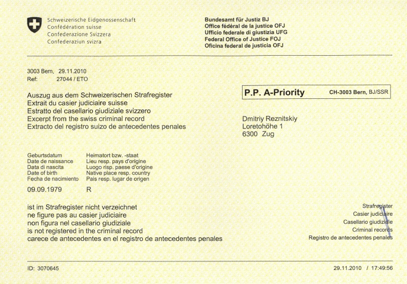 Заказал бумагу об отсутствии проблем с полицией. Выглядит это через местный портал госуслуг, через 3 дня по почте получил нужную бумагу