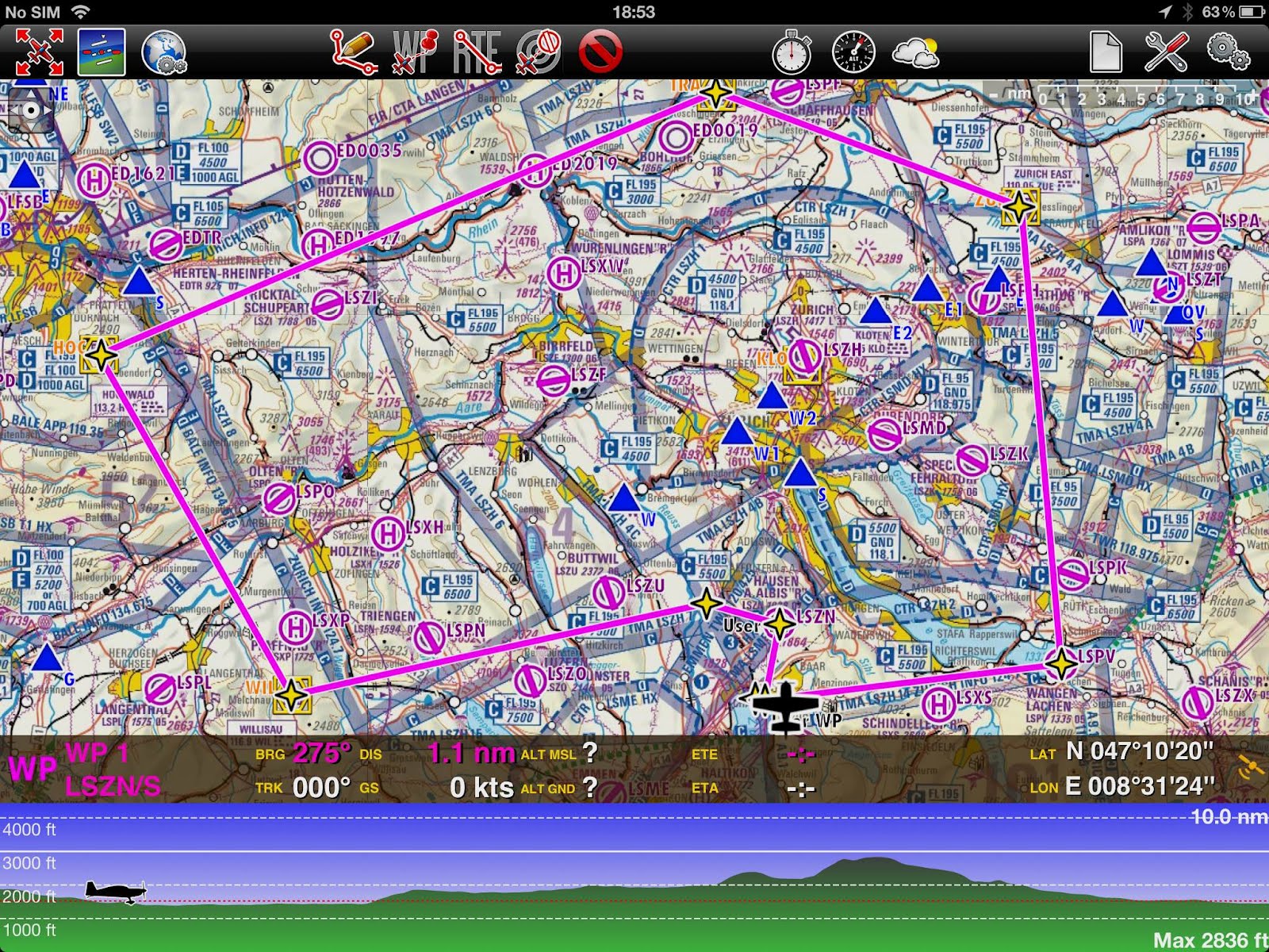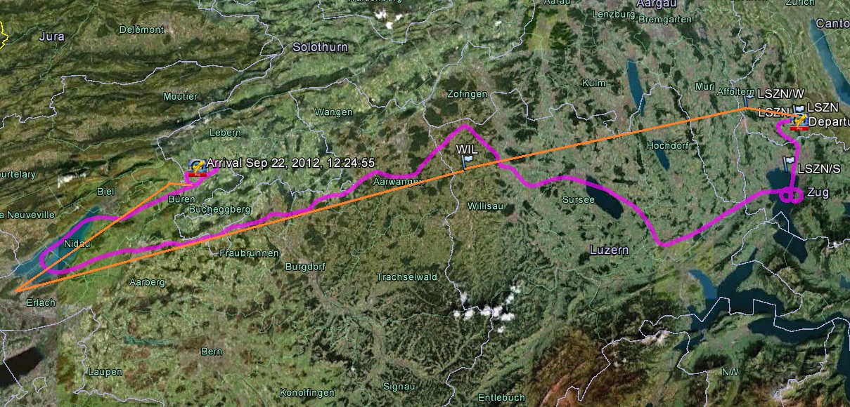 Позже по плану был соло-полёт на полтора часа, вполне себе стандартный — LSZN-WIL-Erlach-LSZG, потом обратно. Для начала покажу Short TAF