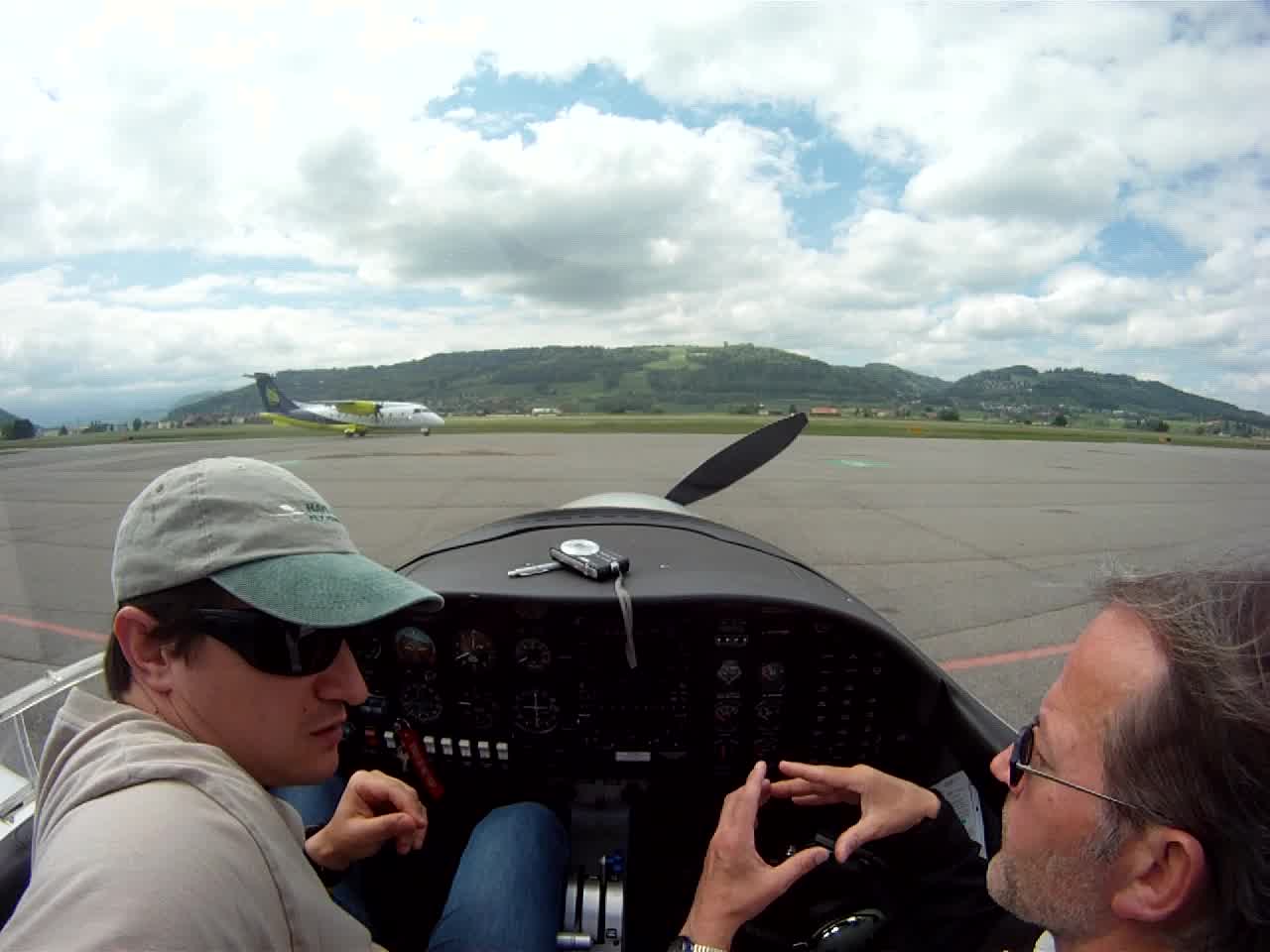 Пошуршав мозгами с коллегой, решили пойти на это дело. Я созвонился с главным в клубе и мы договорились о встерче прямо на лётном поле, а это недалеко от Цуга: http://goo.gl/maps/FEWW — аэродром рядом с городком Hausen am Albis. Как всегда, встретиться так, чтобы и я, и коллега и главный по клубу сразу вместе не получилось, поэтому туда я поехал один, на велике. Десять км, но по холмам... На месте меня встретил Ролан, приятный мужчина, где-то за 50 лет. Бывший пилот авиакомпании Swissair, позже — личный пилот одного российского алигарха, в настоящее время просто частный пилот и вот руководитель клуба http://www.sfswissair.ch/ (Chief Flight Instructor). За чашкой кофе Ролан рассказал мне вкратце о том, как выглядит процесс и предложил сразу полетать. Попёрло! На выбор — маленькие Aquilla, Cessna 172, т.п. Выбор — Piper Archer ( http://en.wikipedia.org/wiki/Piper_Cherokee )