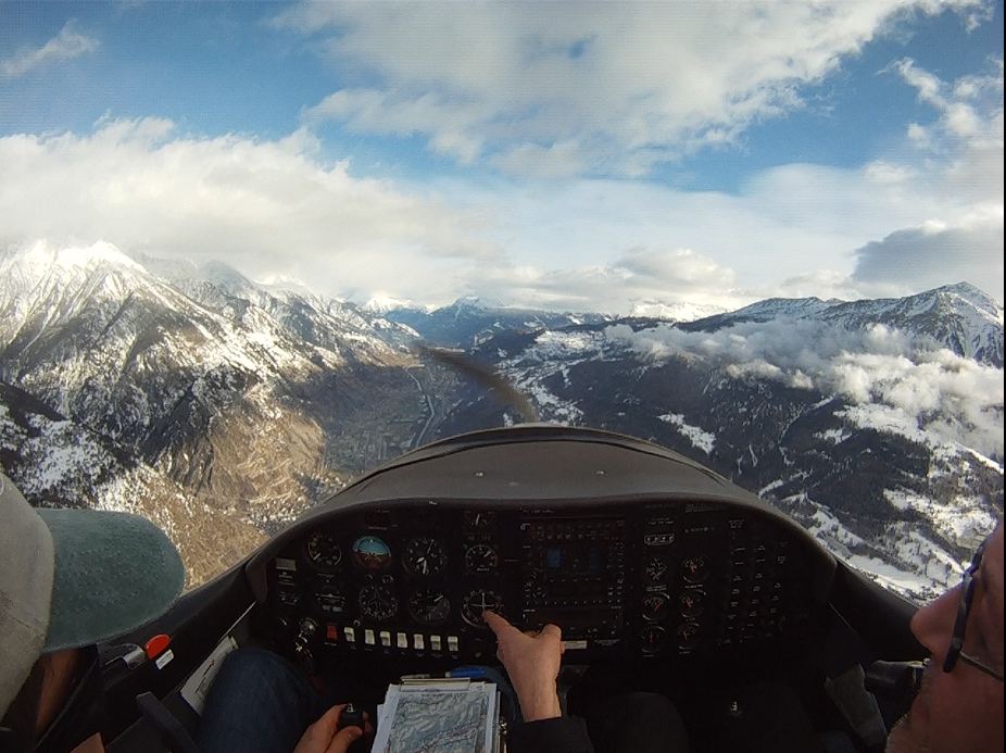 По пути LSZN-LSZG я предполагал лететь на 5500. GAMET обещал 30 узлов ветра прямо в нос. Так и было. Я летел IAS=100-110kt, GPS показывал GS=65-70MPH. Подлетаю к границе TMA Bern, и оп-па, радило сломалось. Как-чего — неясно. Я могу говорить, как потом выяснилось при этом меня слышно, а вот я нифига не слышу. (Потом я вспомнил, что во время первого полёта сегодня предохранитель перегрева не просто так выскочил, было дело). Я, дурилка, не сообразил, что могу вторым радио воспользоваться. Начал накручивать 360, чтоб сообразить, что делать. Решил вернуться, ибо ни в Гренхен, ни в Берн садиться без радио нельзя. Возвращаюсь назад и оп-паньки, на родно аэродроме смог сесть только с третьего захода. В такой погоде я ещё ни разу сам не садился. Было дело в Рароне, но там более-менее постоянно дуло вдоль полосы, тут же меня ещё и развернуло, как только сел. Инструктор сказал, что с земли было видно, как меня швыряло во все стороны, а иногда и просто несло вниз. Ну да будет и такой опыт.