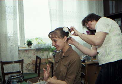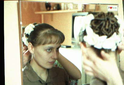 Nu i brak "xudozhestvennyj". Skol'ko raz ya sam sebe i znakomym tverdil. "CHelovek v rost - prover' nogi, ruki, golovu (chtoby ne obrezalos'), chtoby ne torchali iz-za golovy byaki vsyakie (xotya ya v ZAGSe narochno prilepil zhenixu svetyaschiesya "rozhki"), chtoby so storon ne bylo obrezannyx ruk, golov, t.p. Lyudej, ne voshedshix v kadr". Vot. Vse oshibki, vse vozmozhnye ix sochetaniya ya sovershil. Kompozicii v kadrax - voobsche nikakoj. Kuda ya smotrel?! Tipichnyj primer - portret. YA obychno fokusiruyus' central'nym datchikom po licu, potom kadriruyu tak, chtoby nad golovoj ne ostalos' pustoe mesto i snimayu. Zdes' zhe neeeeet. "Kak gvozd' v dosku" Lico v samoj seredine kadra. Kuda ya smotrel?!!! Nu ladno v obychnoj zhizni, snimki, kotorye ya delayu dlya sebya, no yyto zh raz v zhizni (nadeyus').