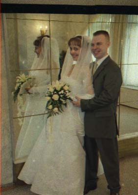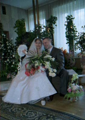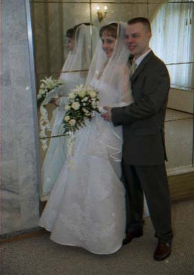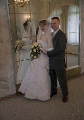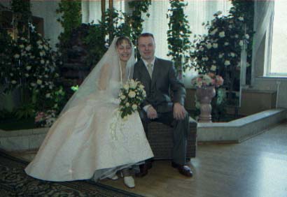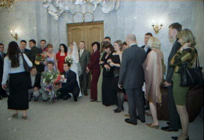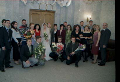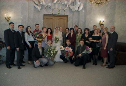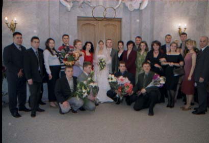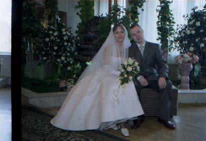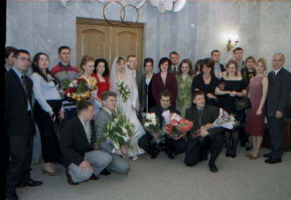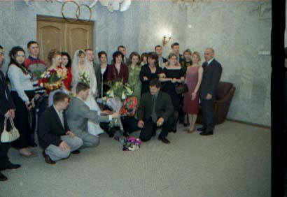 Nu i brak "xudozhestvennyj". Skol'ko raz ya sam sebe i znakomym tverdil. "CHelovek v rost - prover' nogi, ruki, golovu (chtoby ne obrezalos'), chtoby ne torchali iz-za golovy byaki vsyakie (xotya ya v ZAGSe narochno prilepil zhenixu svetyaschiesya "rozhki"), chtoby so storon ne bylo obrezannyx ruk, golov, t.p. Lyudej, ne voshedshix v kadr". Vot. Vse oshibki, vse vozmozhnye ix sochetaniya ya sovershil. Kompozicii v kadrax - voobsche nikakoj. Kuda ya smotrel?! Tipichnyj primer - portret. YA obychno fokusiruyus' central'nym datchikom po licu, potom kadriruyu tak, chtoby nad golovoj ne ostalos' pustoe mesto i snimayu. Zdes' zhe neeeeet. "Kak gvozd' v dosku" Lico v samoj seredine kadra. Kuda ya smotrel?!!! Nu ladno v obychnoj zhizni, snimki, kotorye ya delayu dlya sebya, no yyto zh raz v zhizni (nadeyus').