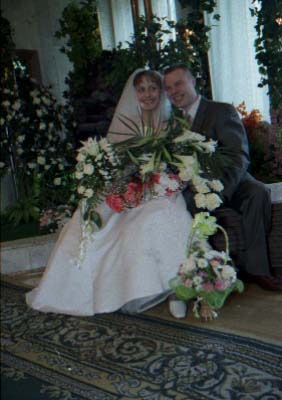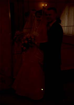 Ну и брак "художественный". Сколько раз я сам себе и знакомым твердил. "Человек в рост - проверь ноги, руки, голову (чтобы не обрезалось), чтобы не торчали из-за головы бяки всякие (хотя я в ЗАГСе нарочно прилепил жениху светящиеся "рожки"), чтобы со сторон не было обрезанных рук, голов, т.п. Людей, не вошедших в кадр". Вот. Все ошибки, все возможные их сочетания я совершил. Композиции в кадрах - вообще никакой. Куда я смотрел?! Типичный пример - портрет. Я обычно фокусируюсь центральным датчиком по лицу, потом кадрирую так, чтобы над головой не осталось пустое место и снимаю. Здесь же нееееет. "Как гвоздь в доску" Лицо в самой середине кадра. Куда я смотрел?!!! Ну ладно в обычной жизни, снимки, которые я делаю для себя, но это ж раз в жизни (надеюсь).