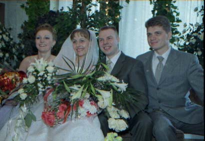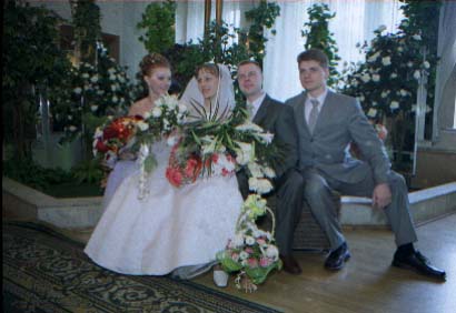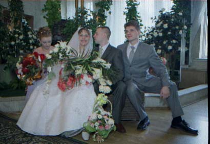Общее резюме - я молодожёнам предлагал, что лучше будет нанять профи. По делу. Техническтй брак есть, брак - 1. Шевелёнка. Есть относительно нормальные кадры, которые я посоветую сделать 9х13 и "обложить" ими одну большую фотку. 2. Пересвет. Есть совсем убитые кадры, немного, 2-3 штуки. 3. Недоэкпонированные. Их побольше, около 10-15 штук, но вытянуть за исключением нескольких можно.