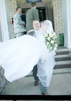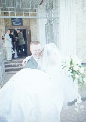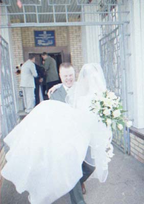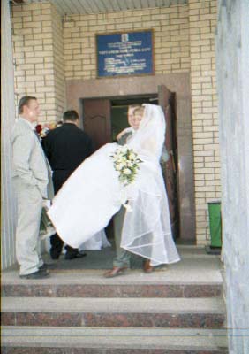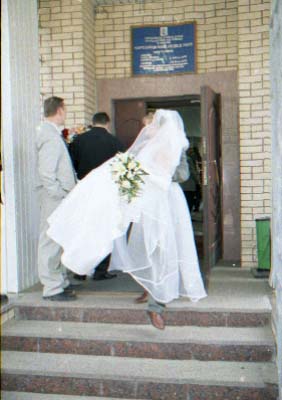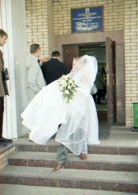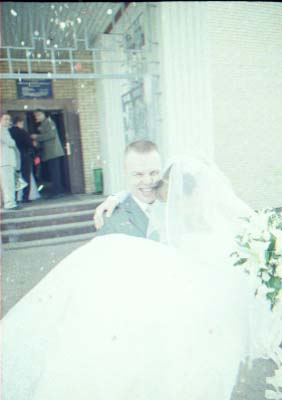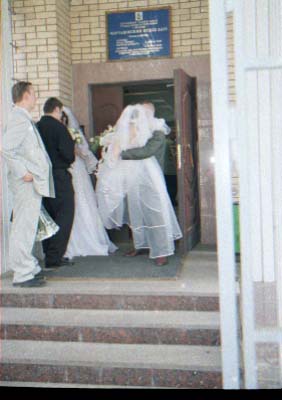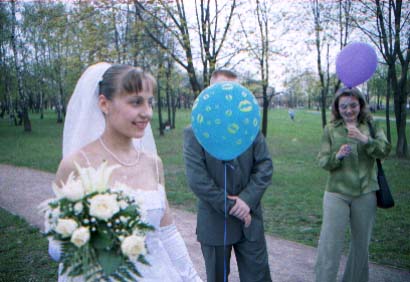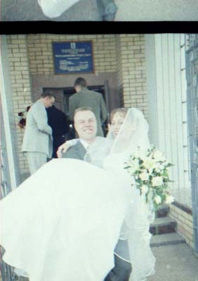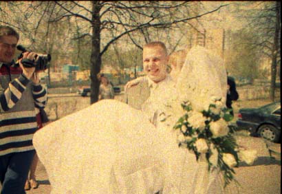 Nu i brak "xudozhestvennyj". Skol'ko raz ya sam sebe i znakomym tverdil. "CHelovek v rost - prover' nogi, ruki, golovu (chtoby ne obrezalos'), chtoby ne torchali iz-za golovy byaki vsyakie (xotya ya v ZAGSe narochno prilepil zhenixu svetyaschiesya "rozhki"), chtoby so storon ne bylo obrezannyx ruk, golov, t.p. Lyudej, ne voshedshix v kadr". Vot. Vse oshibki, vse vozmozhnye ix sochetaniya ya sovershil. Kompozicii v kadrax - voobsche nikakoj. Kuda ya smotrel?! Tipichnyj primer - portret. YA obychno fokusiruyus' central'nym datchikom po licu, potom kadriruyu tak, chtoby nad golovoj ne ostalos' pustoe mesto i snimayu. Zdes' zhe neeeeet. "Kak gvozd' v dosku" Lico v samoj seredine kadra. Kuda ya smotrel?!!! Nu ladno v obychnoj zhizni, snimki, kotorye ya delayu dlya sebya, no yyto zh raz v zhizni (nadeyus').