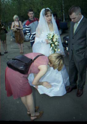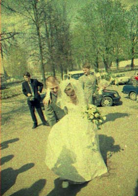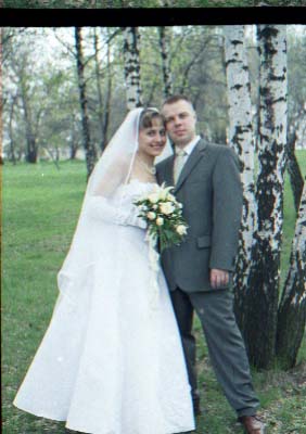 Общее резюме - я молодожёнам предлагал, что лучше будет нанять профи. По делу. Техническтй брак есть, брак - 1. Шевелёнка. Есть относительно нормальные кадры, которые я посоветую сделать 9х13 и "обложить" ими одну большую фотку. 2. Пересвет. Есть совсем убитые кадры, немного, 2-3 штуки. 3. Недоэкпонированные. Их побольше, около 10-15 штук, но вытянуть за исключением нескольких можно.