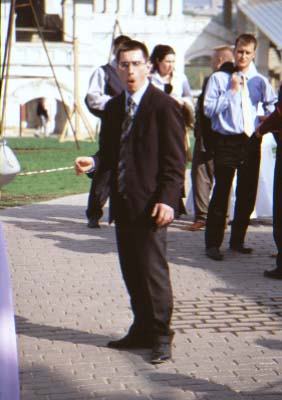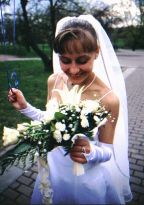 Nu i brak "xudozhestvennyj". Skol'ko raz ya sam sebe i znakomym tverdil. "CHelovek v rost - prover' nogi, ruki, golovu (chtoby ne obrezalos'), chtoby ne torchali iz-za golovy byaki vsyakie (xotya ya v ZAGSe narochno prilepil zhenixu svetyaschiesya "rozhki"), chtoby so storon ne bylo obrezannyx ruk, golov, t.p. Lyudej, ne voshedshix v kadr". Vot. Vse oshibki, vse vozmozhnye ix sochetaniya ya sovershil. Kompozicii v kadrax - voobsche nikakoj. Kuda ya smotrel?! Tipichnyj primer - portret. YA obychno fokusiruyus' central'nym datchikom po licu, potom kadriruyu tak, chtoby nad golovoj ne ostalos' pustoe mesto i snimayu. Zdes' zhe neeeeet. "Kak gvozd' v dosku" Lico v samoj seredine kadra. Kuda ya smotrel?!!! Nu ladno v obychnoj zhizni, snimki, kotorye ya delayu dlya sebya, no yyto zh raz v zhizni (nadeyus').