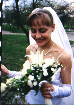 Общее резюме - я молодожёнам предлагал, что лучше будет нанять профи. По делу. Техническтй брак есть, брак - 1. Шевелёнка. Есть относительно нормальные кадры, которые я посоветую сделать 9х13 и "обложить" ими одну большую фотку. 2. Пересвет. Есть совсем убитые кадры, немного, 2-3 штуки. 3. Недоэкпонированные. Их побольше, около 10-15 штук, но вытянуть за исключением нескольких можно.