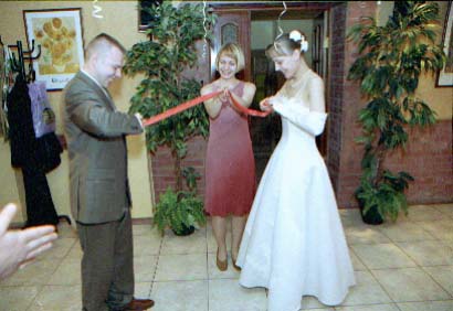 Nu i brak "xudozhestvennyj". Skol'ko raz ya sam sebe i znakomym tverdil. "CHelovek v rost - prover' nogi, ruki, golovu (chtoby ne obrezalos'), chtoby ne torchali iz-za golovy byaki vsyakie (xotya ya v ZAGSe narochno prilepil zhenixu svetyaschiesya "rozhki"), chtoby so storon ne bylo obrezannyx ruk, golov, t.p. Lyudej, ne voshedshix v kadr". Vot. Vse oshibki, vse vozmozhnye ix sochetaniya ya sovershil. Kompozicii v kadrax - voobsche nikakoj. Kuda ya smotrel?! Tipichnyj primer - portret. YA obychno fokusiruyus' central'nym datchikom po licu, potom kadriruyu tak, chtoby nad golovoj ne ostalos' pustoe mesto i snimayu. Zdes' zhe neeeeet. "Kak gvozd' v dosku" Lico v samoj seredine kadra. Kuda ya smotrel?!!! Nu ladno v obychnoj zhizni, snimki, kotorye ya delayu dlya sebya, no yyto zh raz v zhizni (nadeyus').